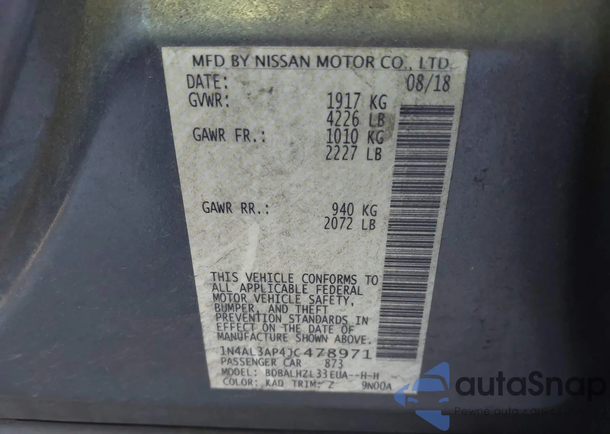 VIN: 1N4AL3AP4JC478971