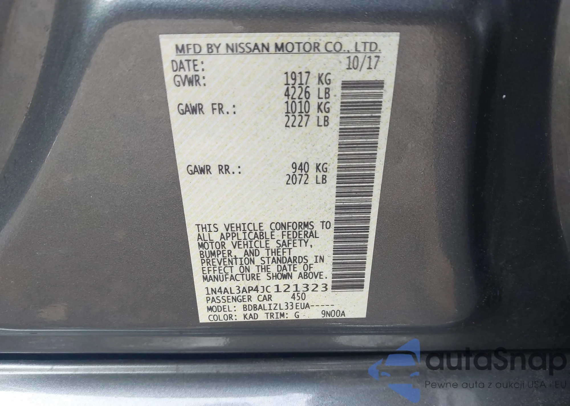 VIN: 1N4AL3AP4JC121323