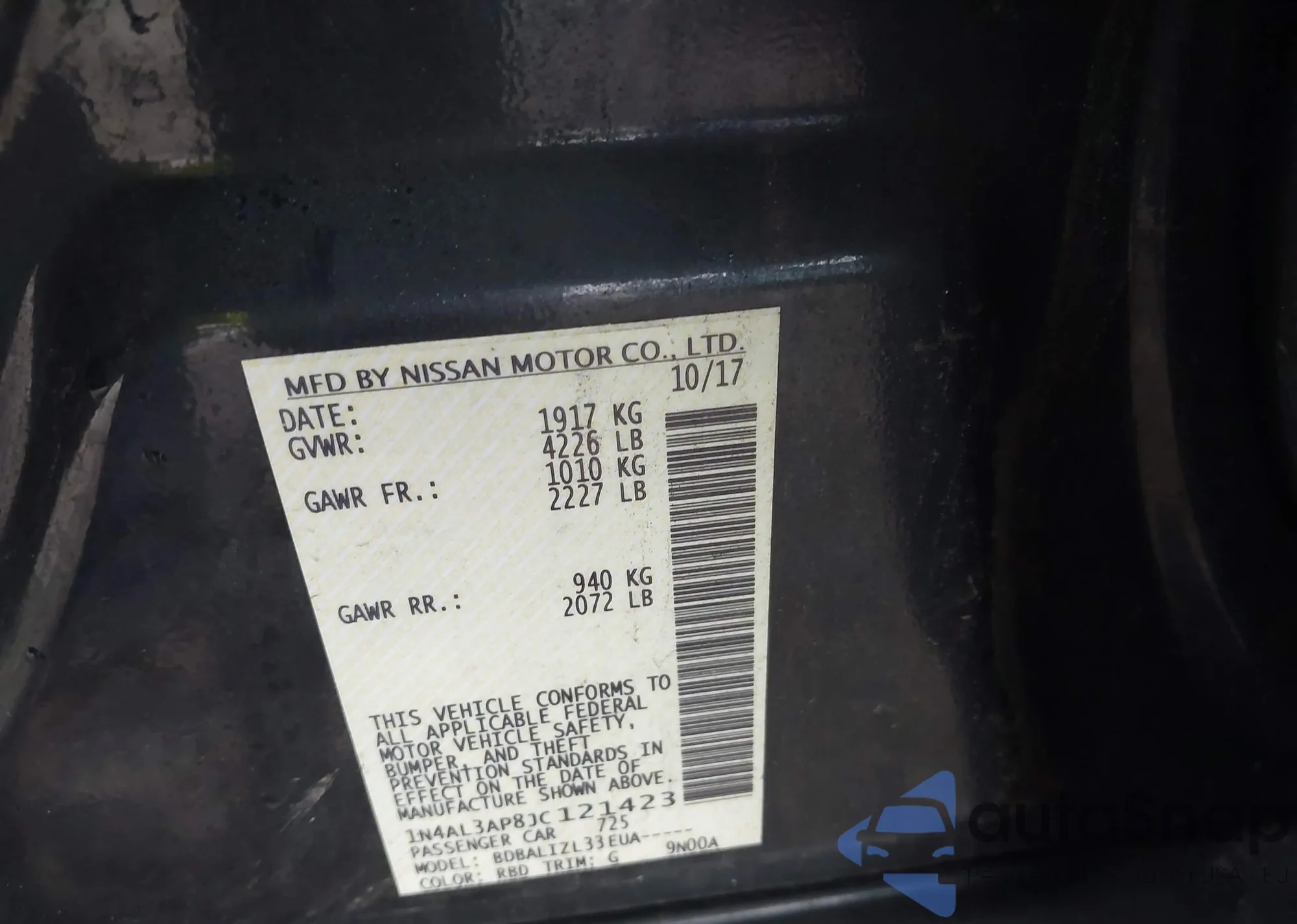 VIN: 1N4AL3AP8JC121423