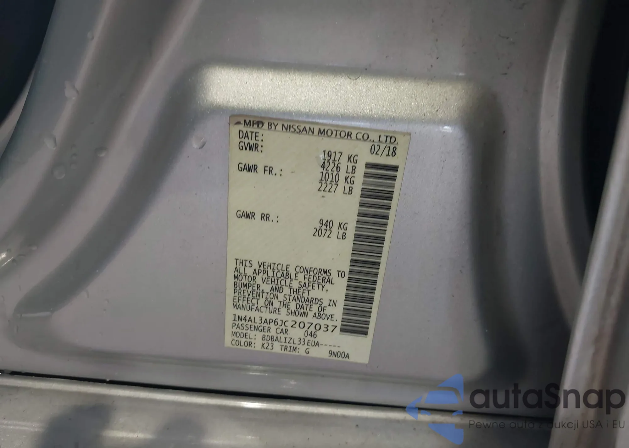 VIN: 1N4AL3AP6JC207037