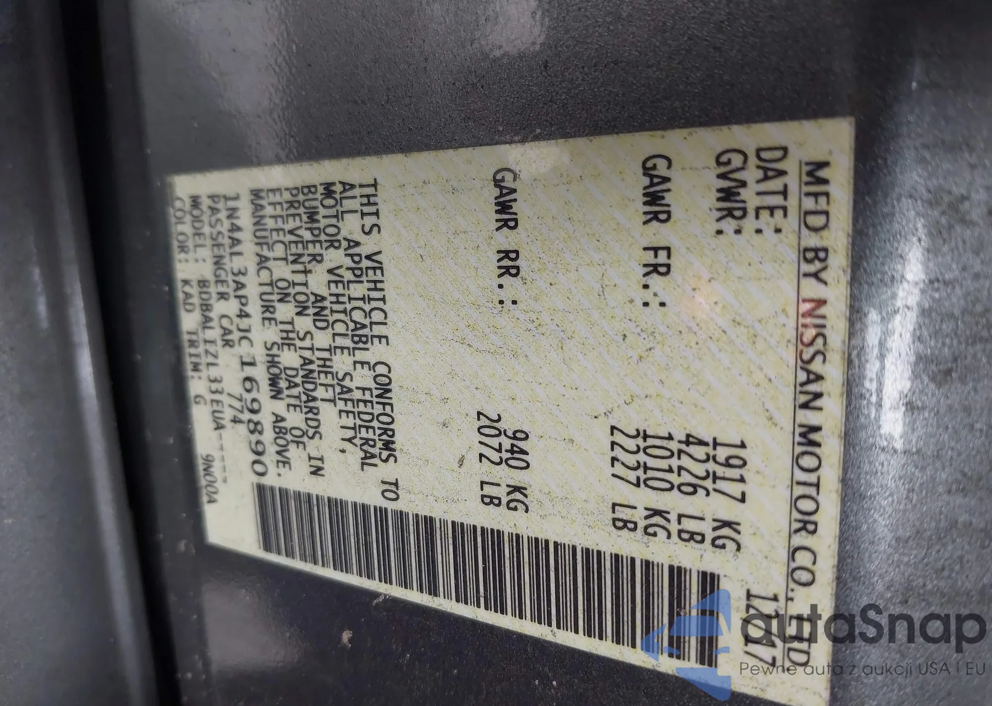 VIN: 1N4AL3AP4JC169890
