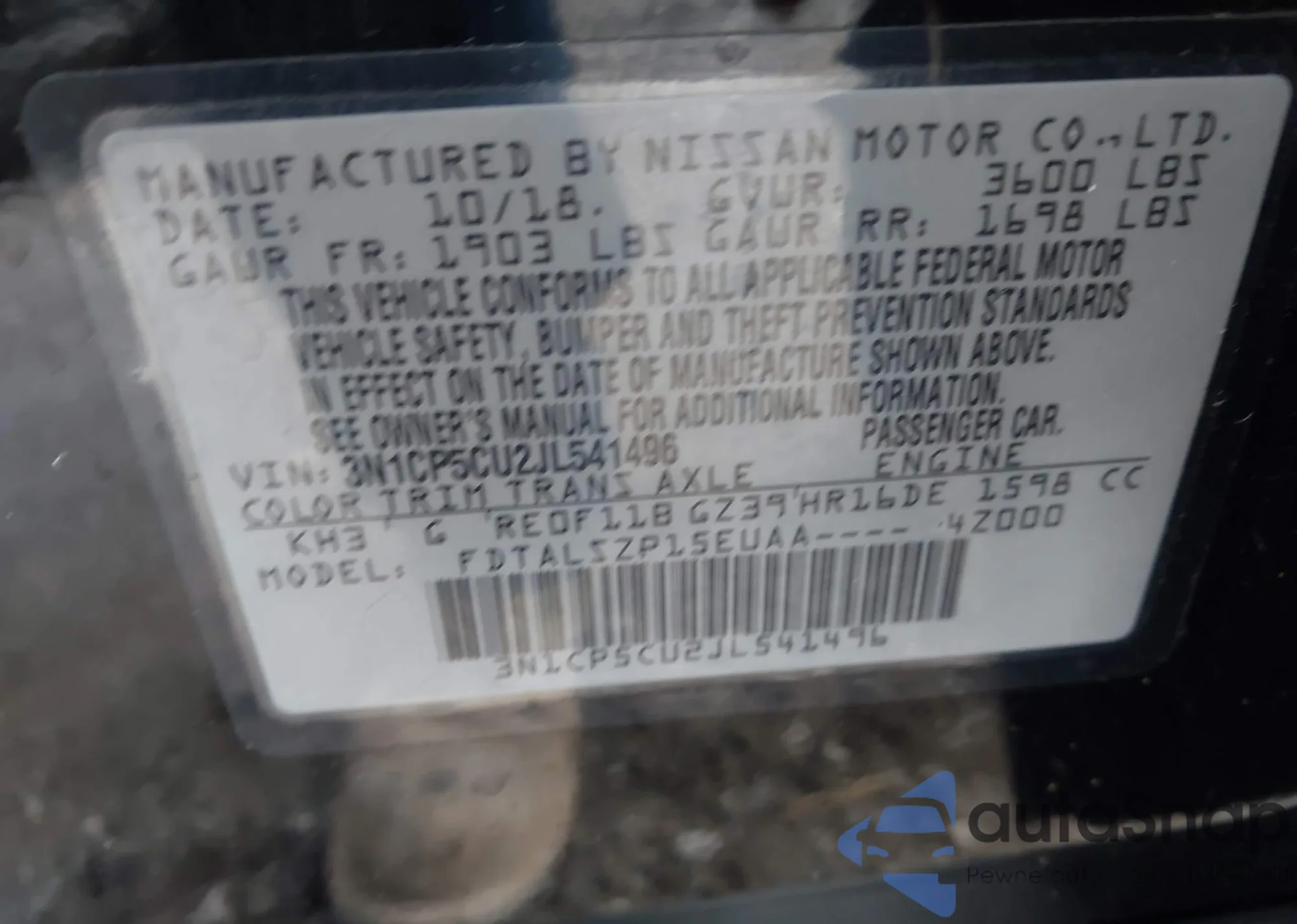 VIN: 3N1CP5CU2JL541496