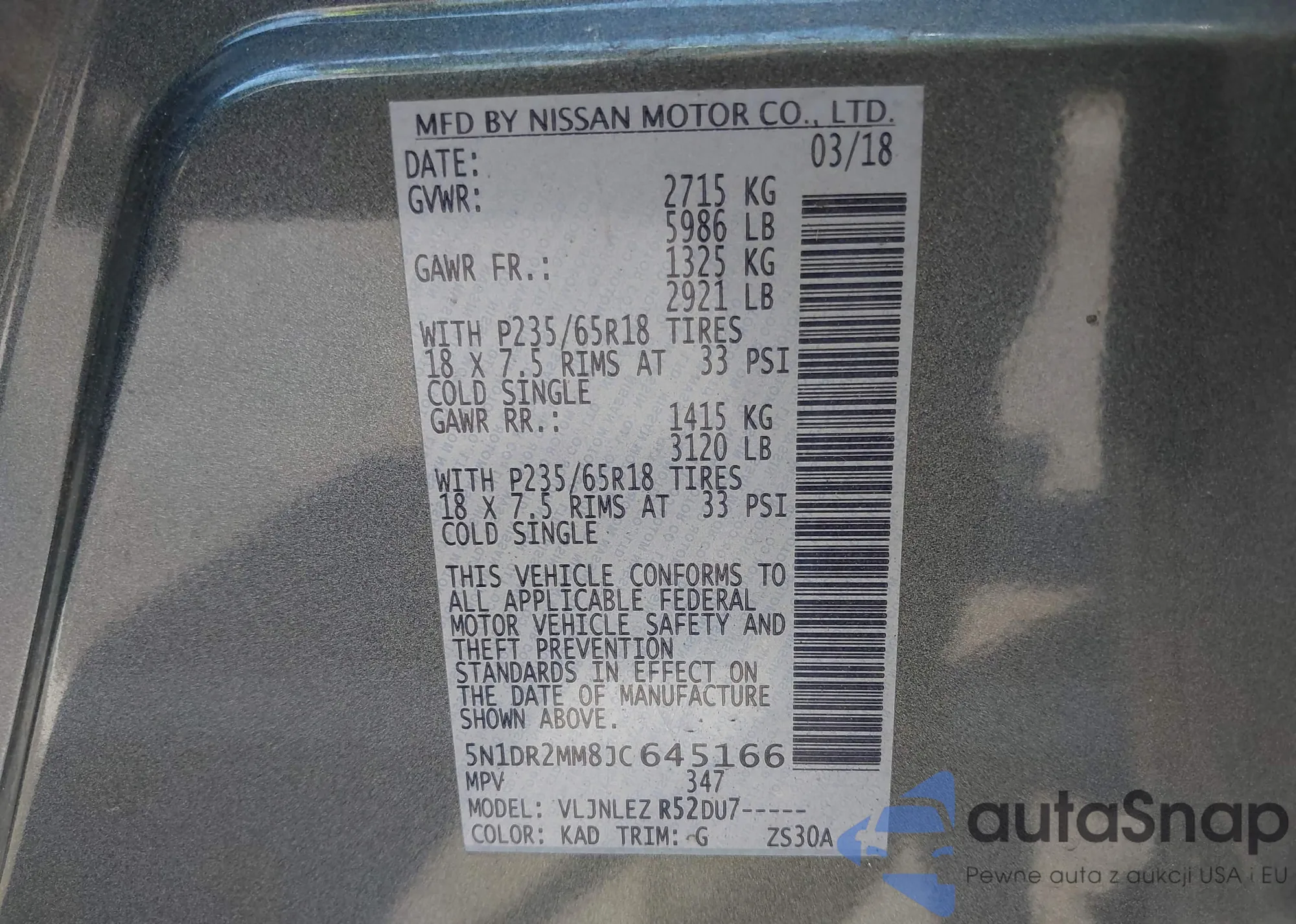 VIN: 5N1DR2MM8JC645166