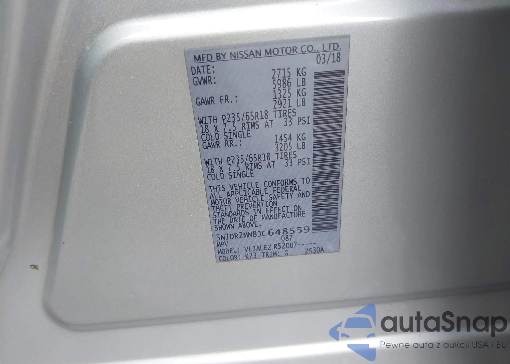 VIN: 5N1DR2MN8JC648559