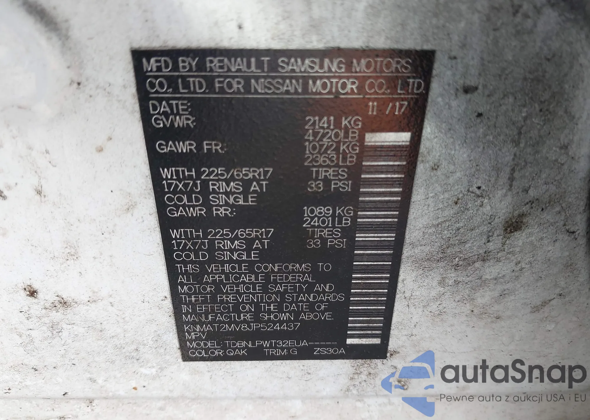 Samochód Nissan Rogue 2018 (VIN KNMAT2MV8JP524437) nie był wcześniej licytowany. Dokumenty są czyste, przebieg odpowiada lub jest niższy niż średnia rynku. Sprzedaje go firma ubezpieczeniowa – polecamy zakup. Dostawa do portu zajmie ok. 6–8 tygodni.