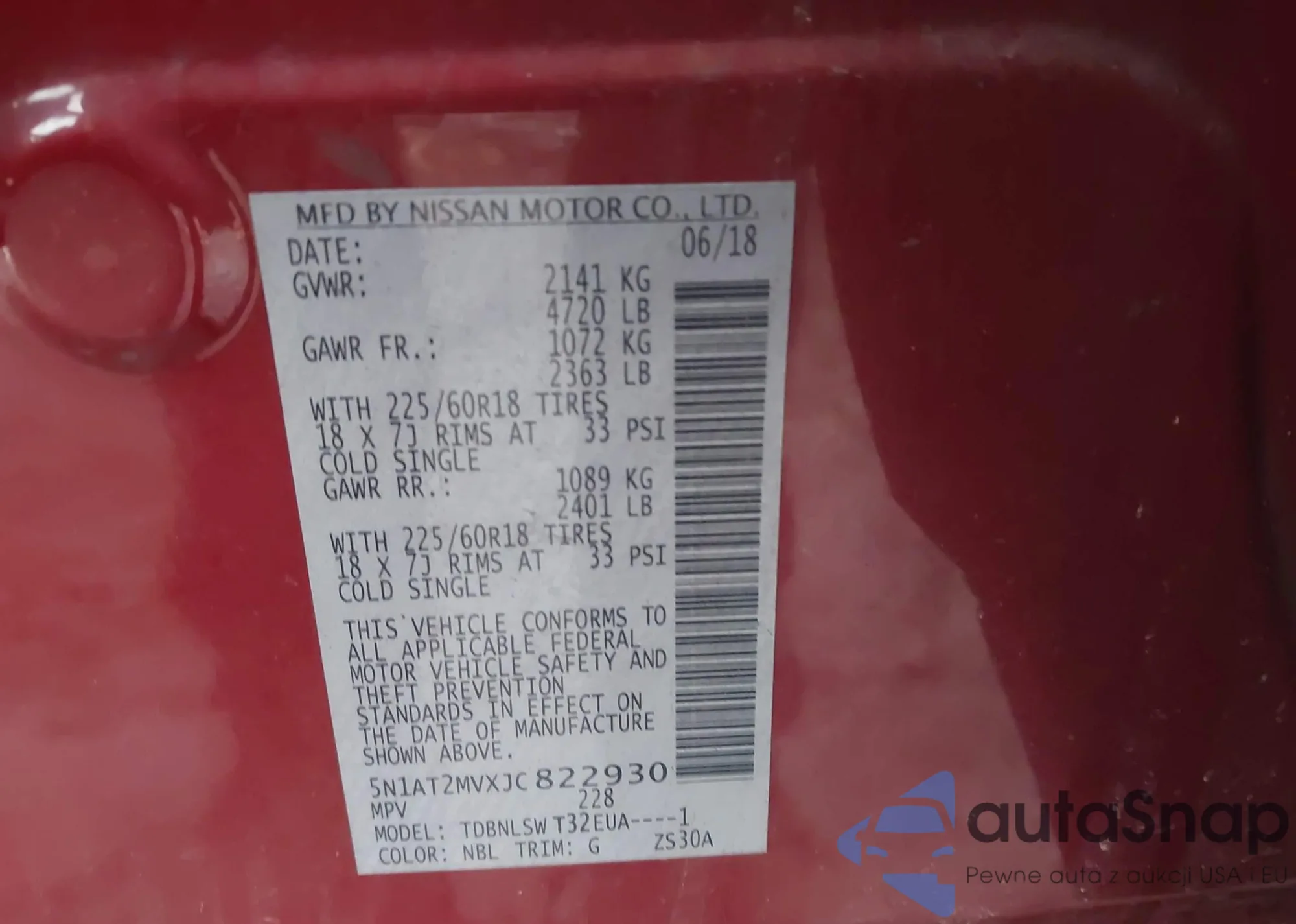 Samochód Nissan Rogue 2018 (VIN 5N1AT2MVXJC822930) nie był wcześniej licytowany. Dokumenty są czyste, przebieg odpowiada lub jest niższy niż średnia rynku. Sprzedaje go firma ubezpieczeniowa – polecamy zakup. Dostawa do portu zajmie ok. 6–8 tygodni.