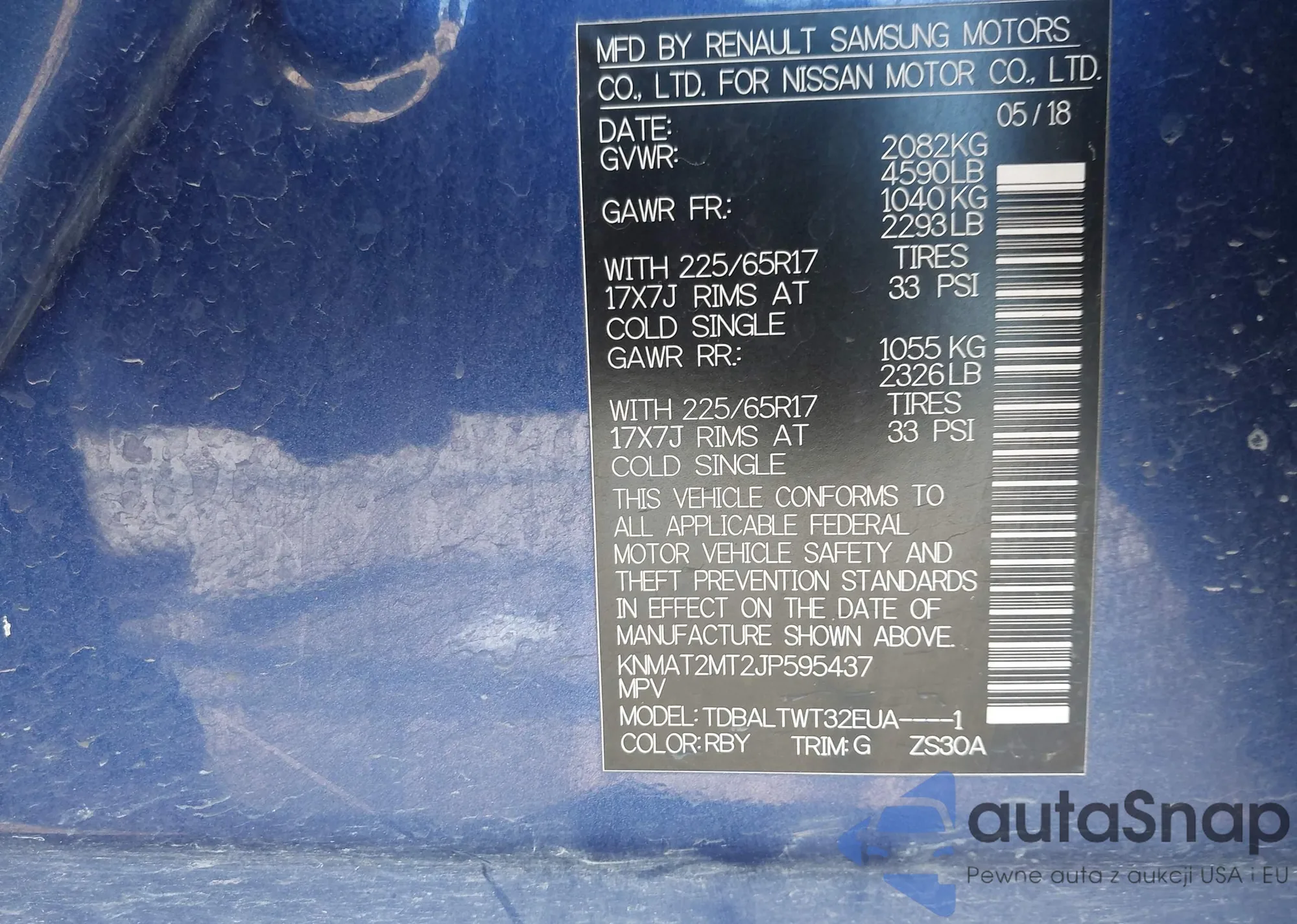 Samochód Nissan Rogue 2018 (VIN KNMAT2MT2JP595437) nie był wcześniej licytowany. Dokumenty są czyste, przebieg odpowiada lub jest niższy niż średnia rynku. Sprzedaje go firma ubezpieczeniowa – polecamy zakup. Dostawa do portu zajmie ok. 6–8 tygodni.