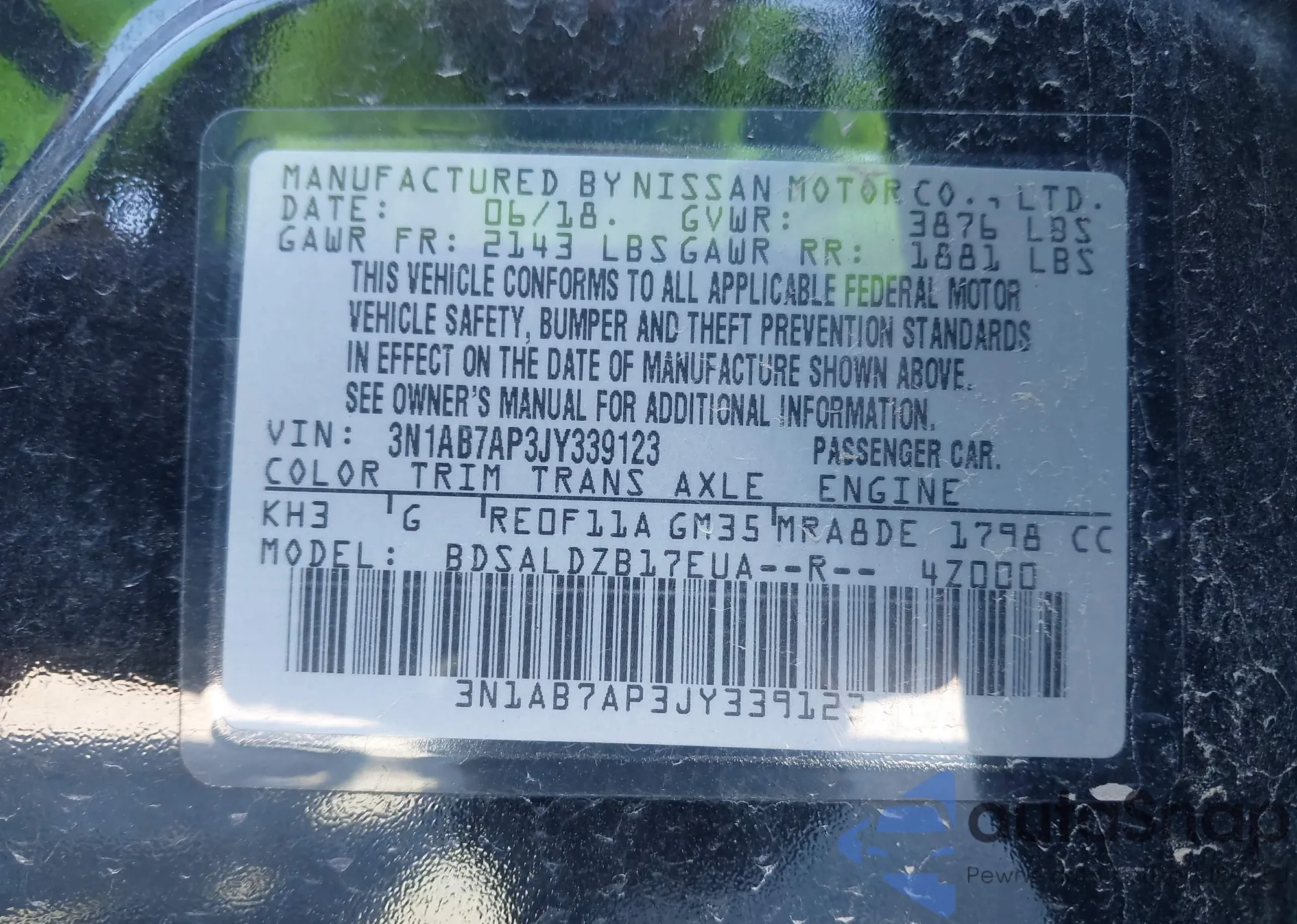 VIN: 3N1AB7AP3JY339123