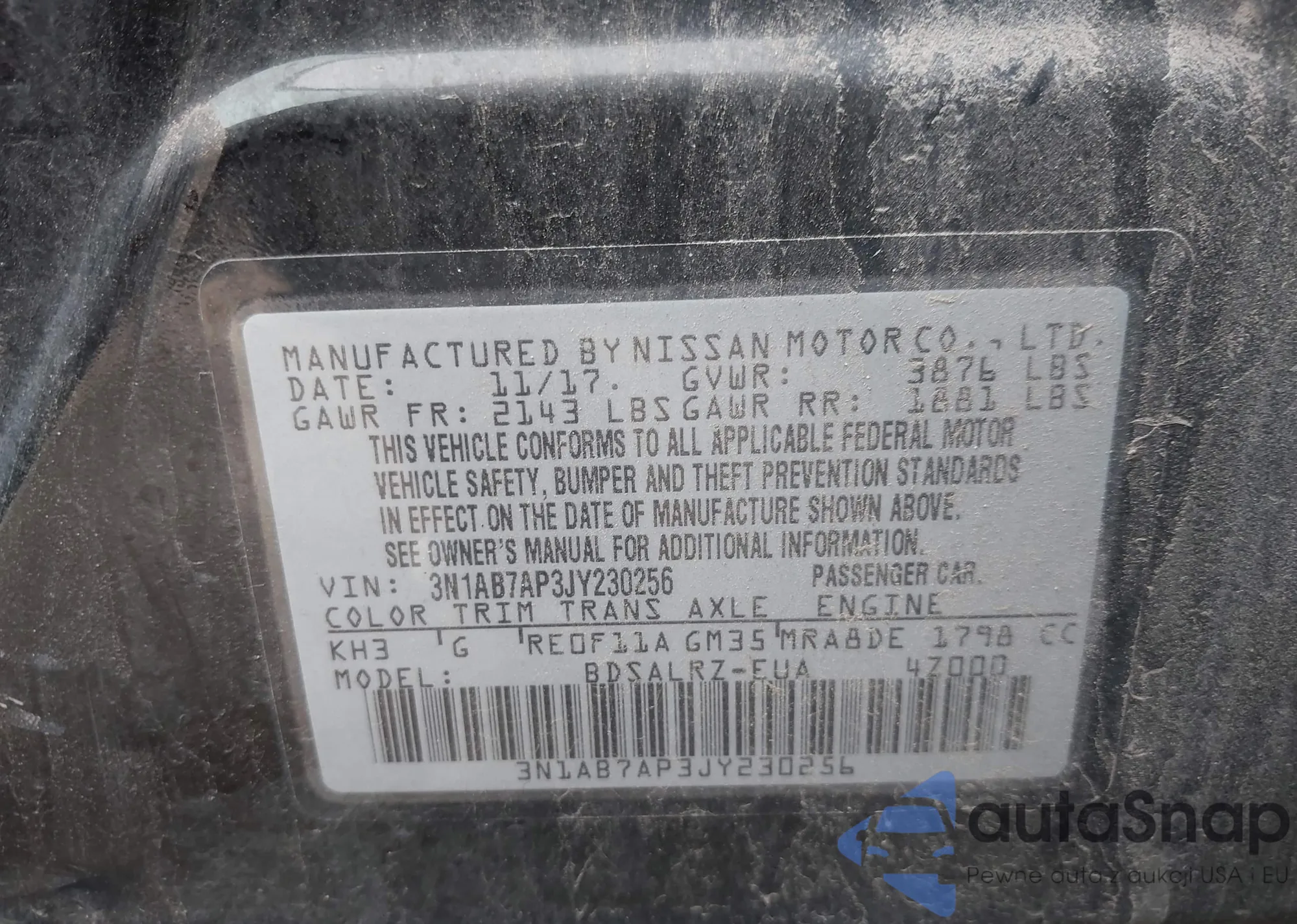 VIN: 3N1AB7AP3JY230256