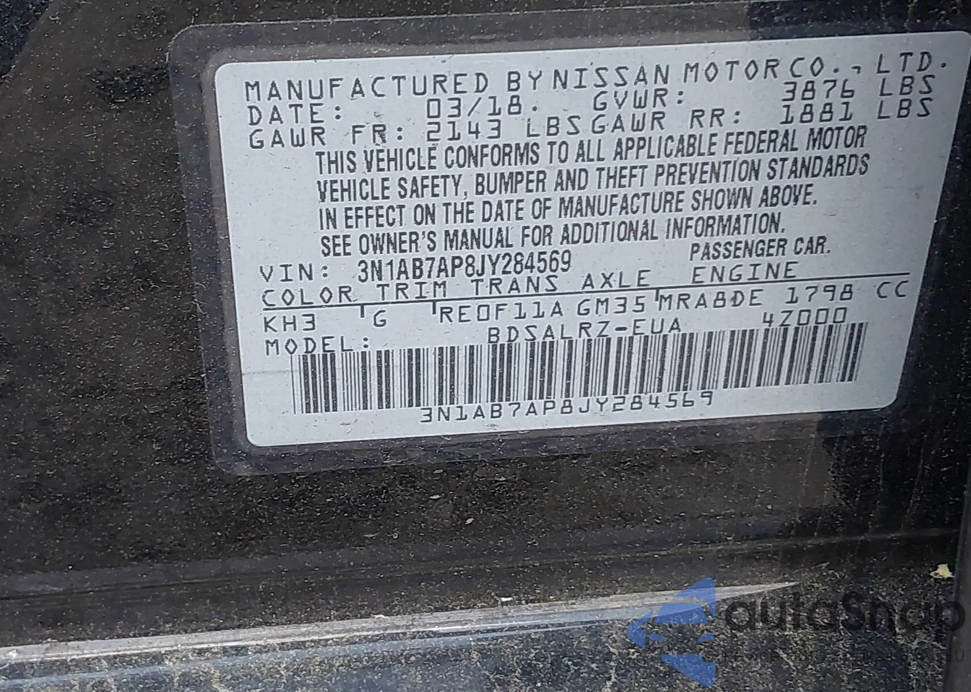 VIN: 3N1AB7AP8JY284569
