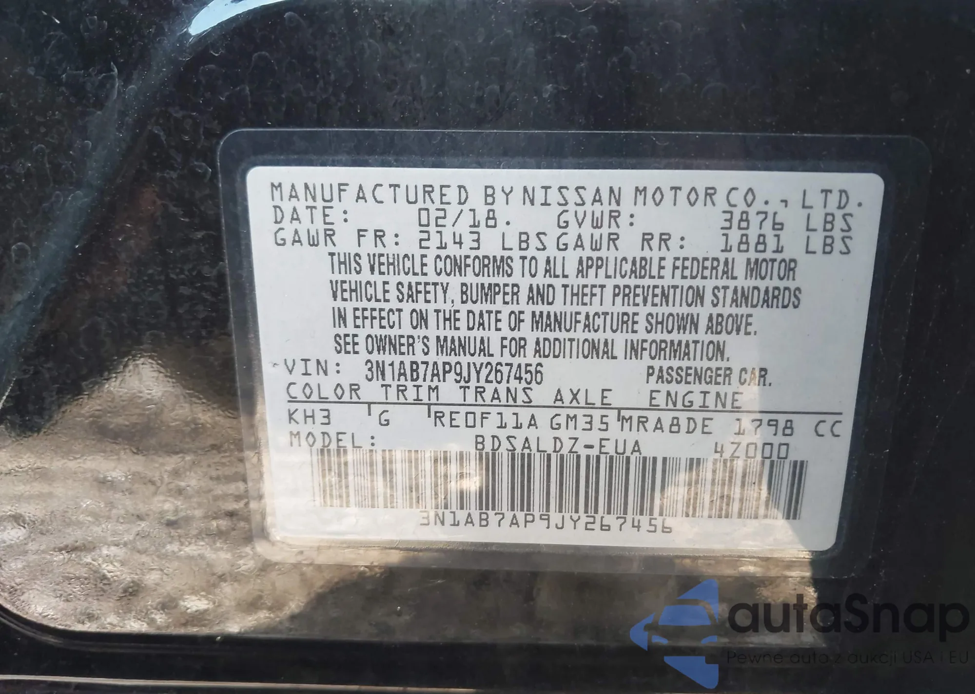 VIN: 3N1AB7AP9JY267456