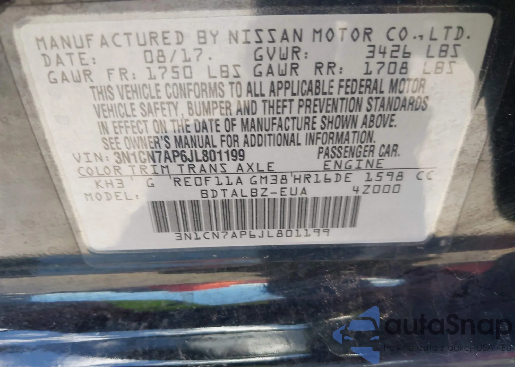 VIN: 3N1CN7AP6JL801199