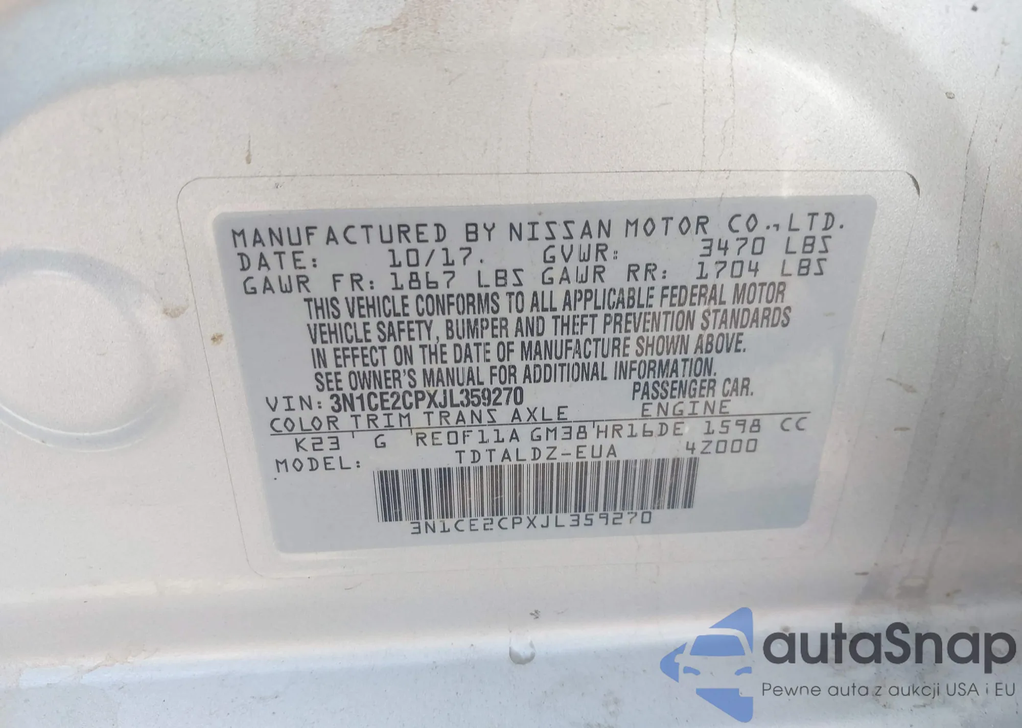 VIN: 3N1CE2CPXJL359270