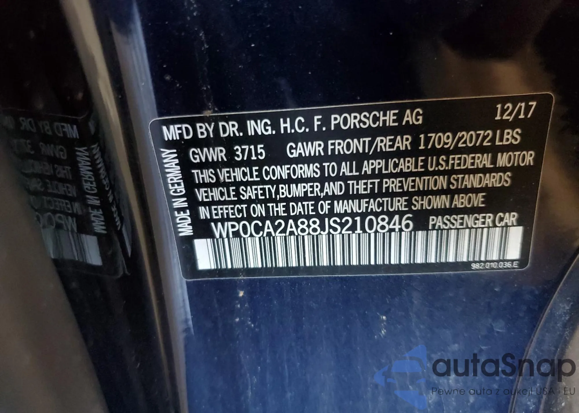 VIN: WP0CA2A88JS210846
