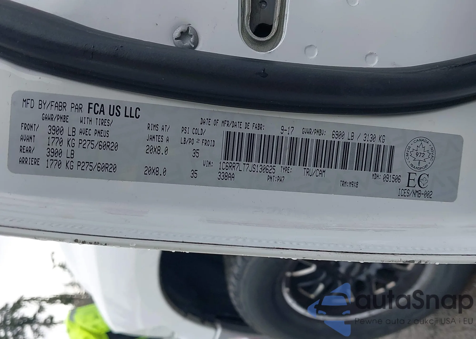 Samochód RAM 1500 2018 (VIN 1C6RR7LT7JS130625) ma dokumenty uniemożliwiające rejestrację. Mogą pojawić się trudności przy eksporcie i rejestracji. Skontaktuj się z ekspertami AutaSnap w celu znalezienia alternatywy.