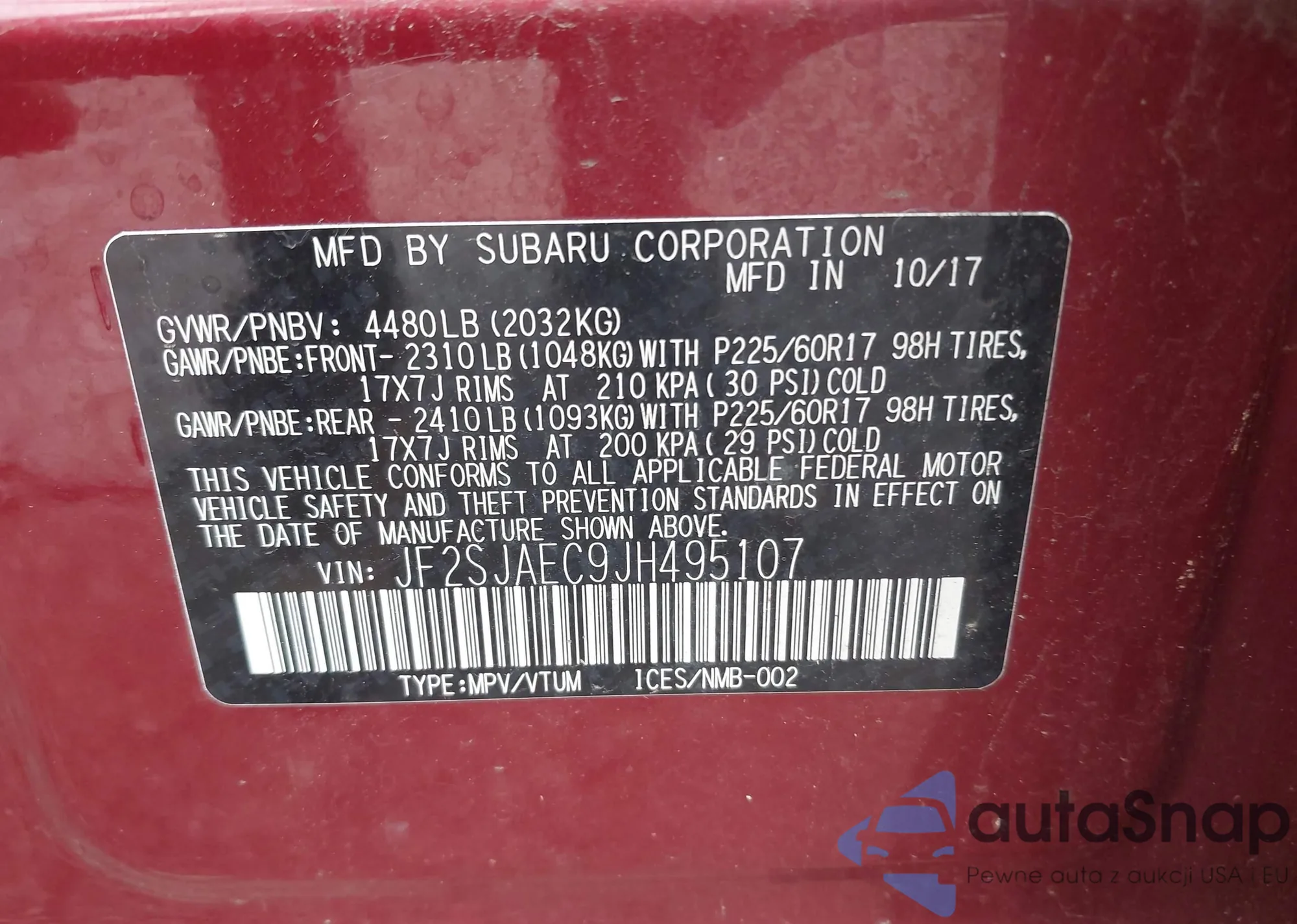 VIN: JF2SJAEC9JH495107