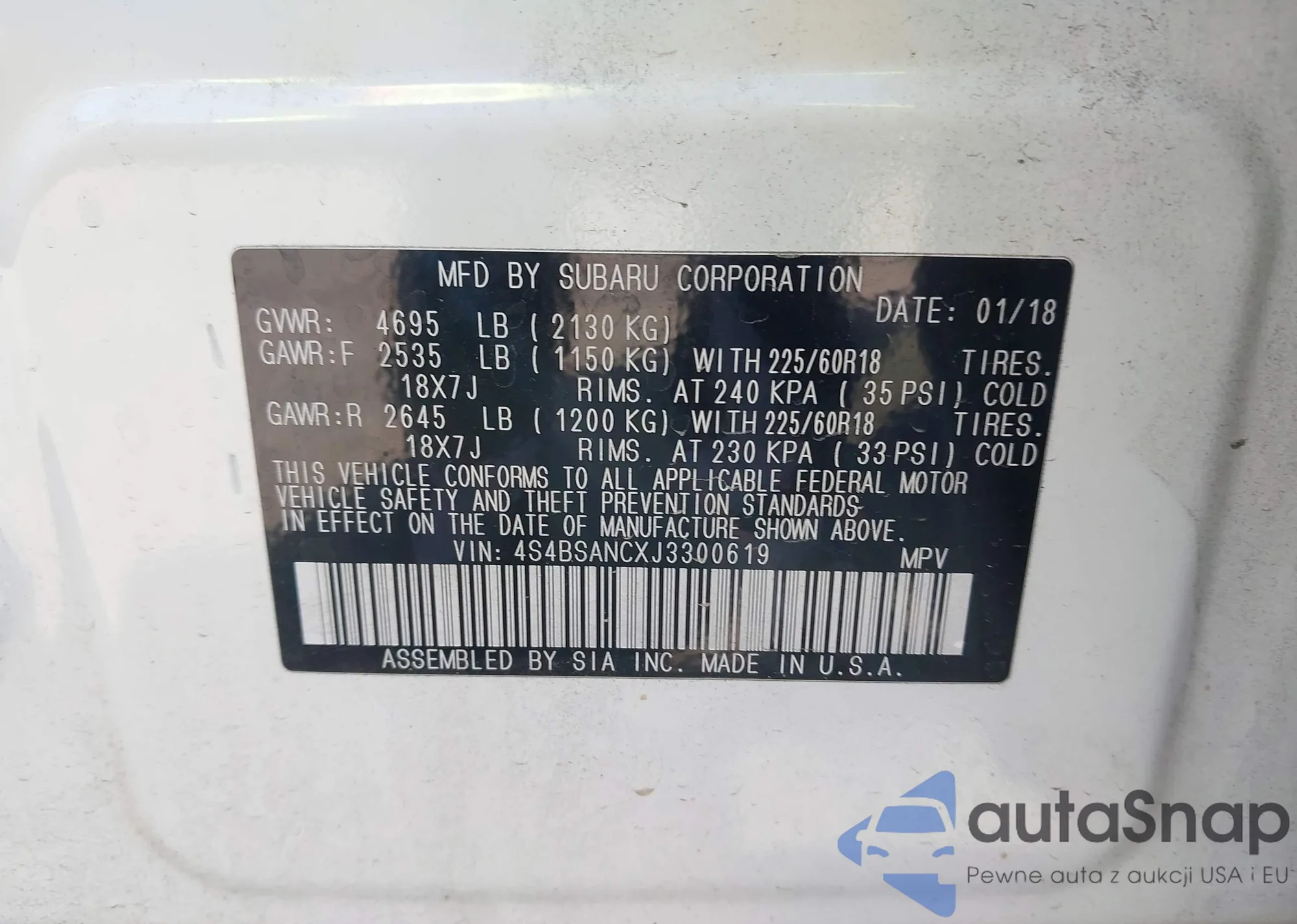 VIN: 4S4BSANCXJ3300619
