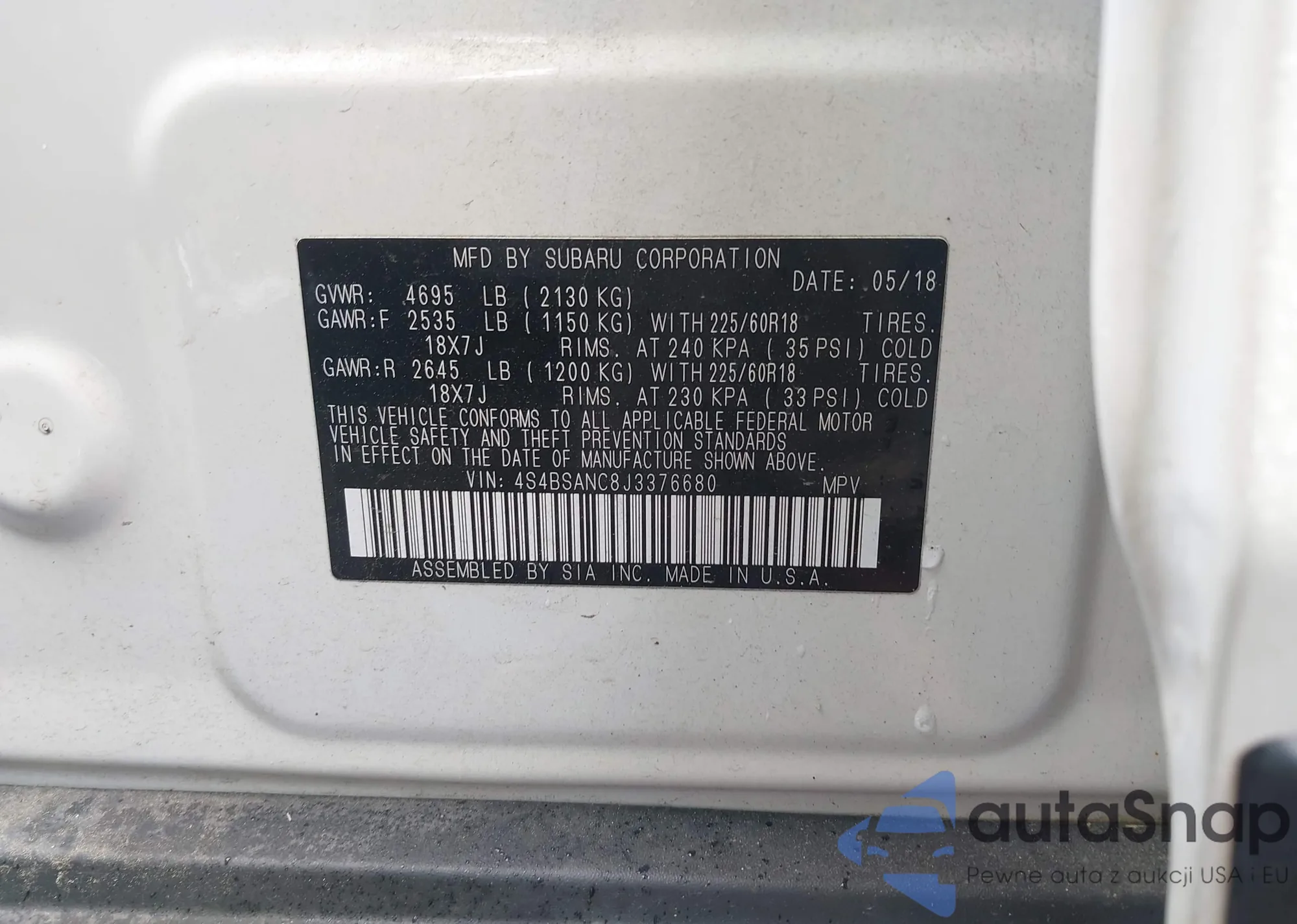 Subaru Outback 2018 – Historia pojazdu (sprzedany na IAAI)