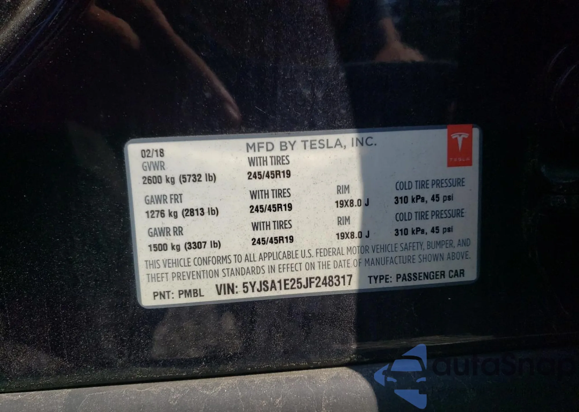 VIN: 5YJSA1E25JF248317