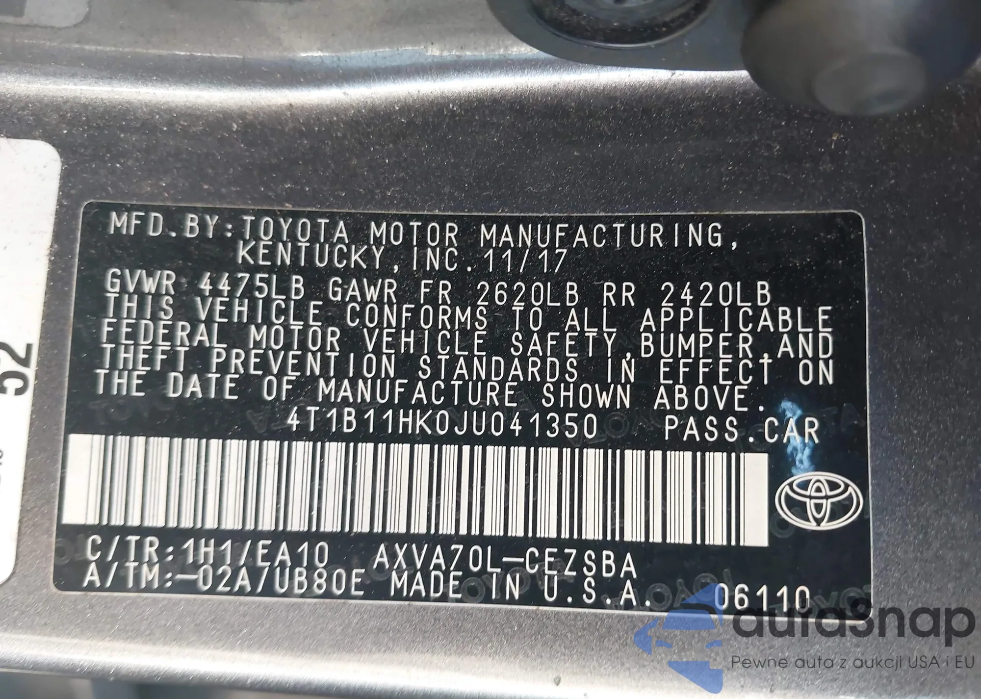 VIN: 4T1B11HK0JU041350