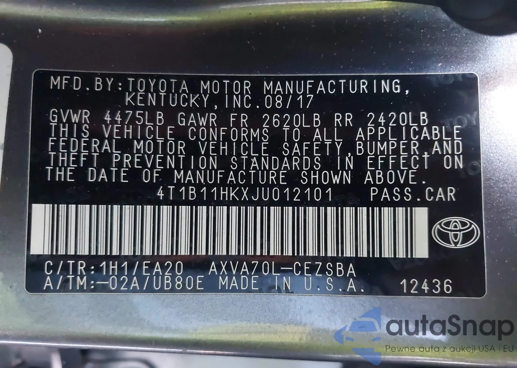 VIN: 4T1B11HKXJU012101