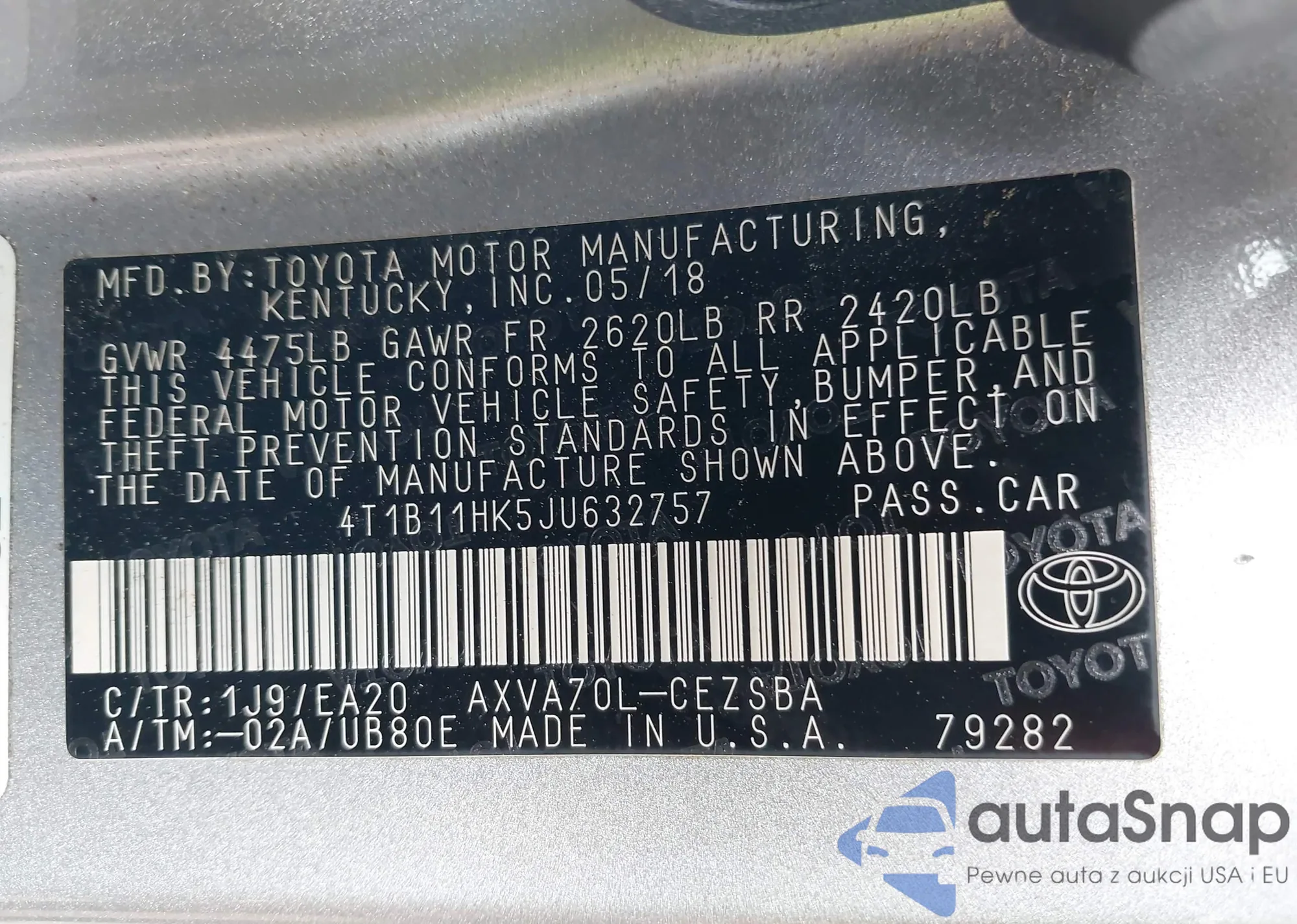 VIN: 4T1B11HK5JU632757