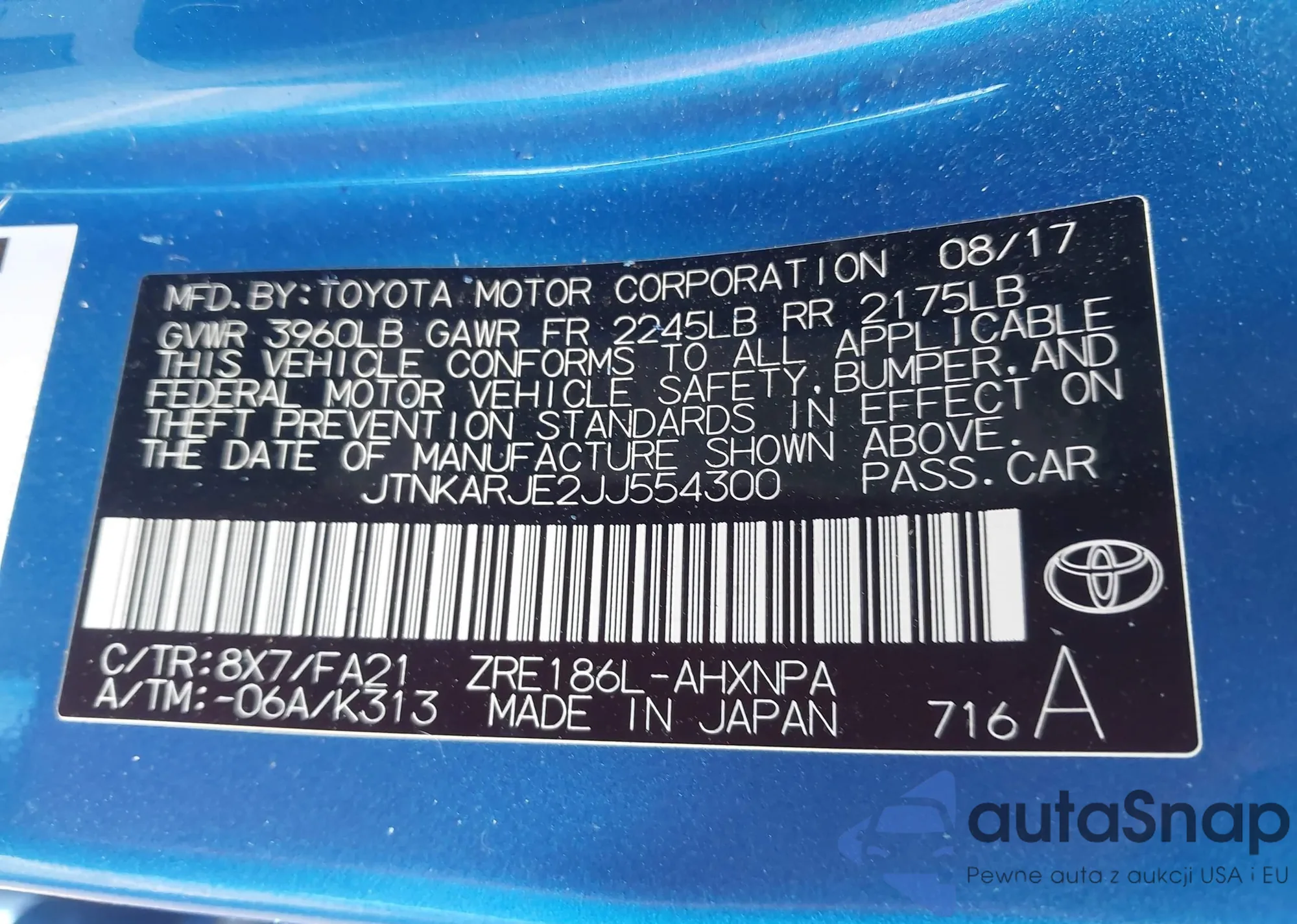 VIN: JTNKARJE2JJ554300