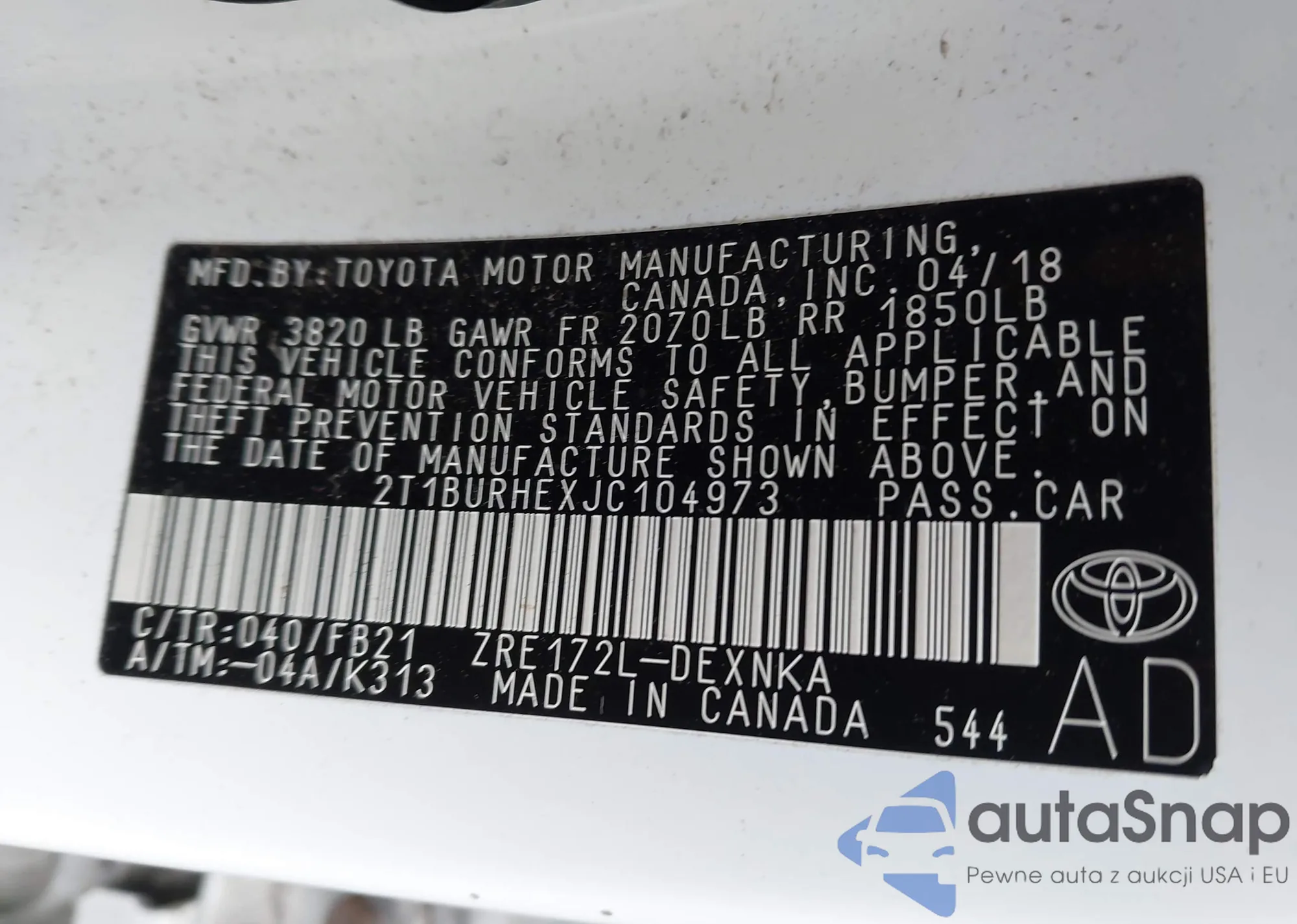 VIN: 2T1BURHEXJC104973