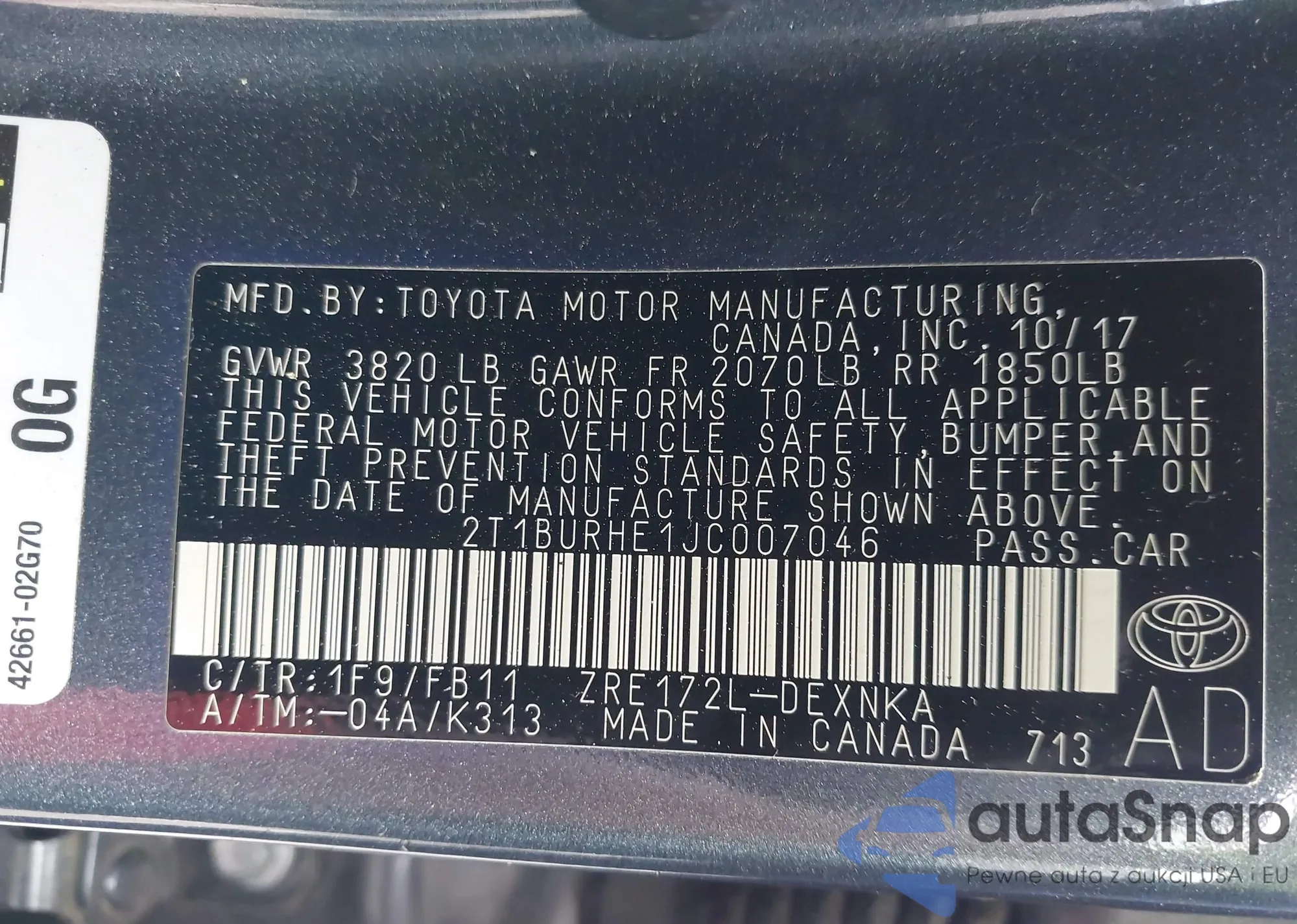 VIN: 2T1BURHE1JC007046