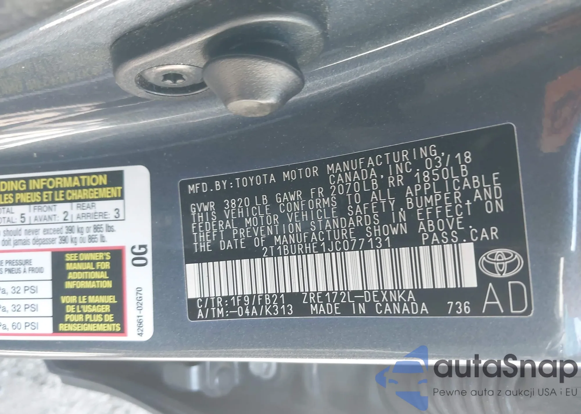 VIN: 2T1BURHE1JC077131