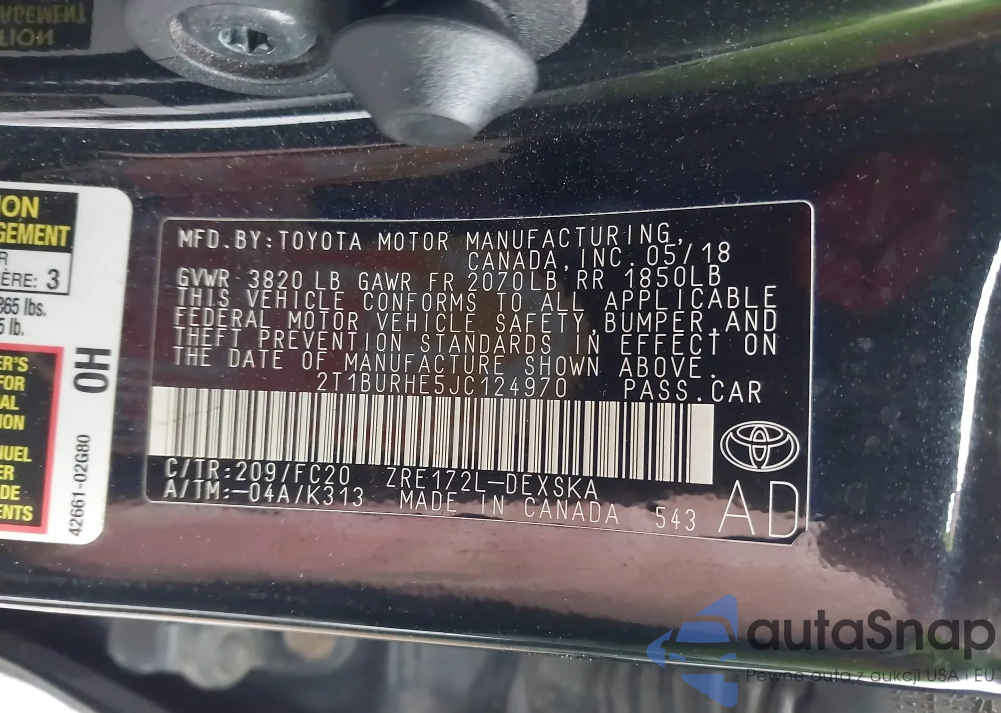 VIN: 2T1BURHE5JC124970