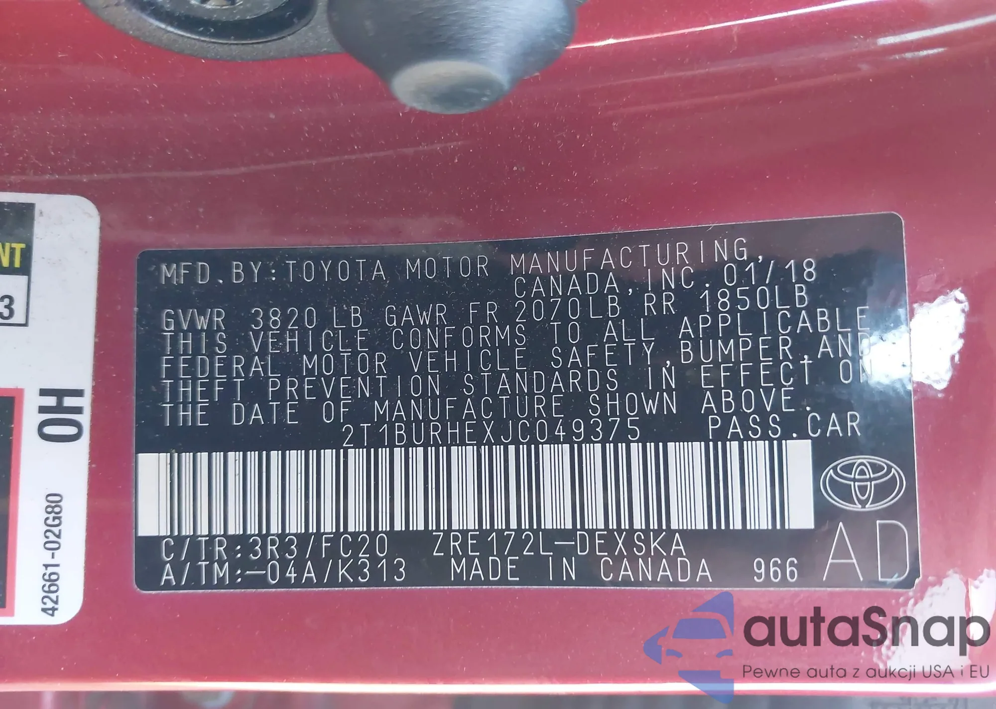 VIN: 2T1BURHEXJC049375