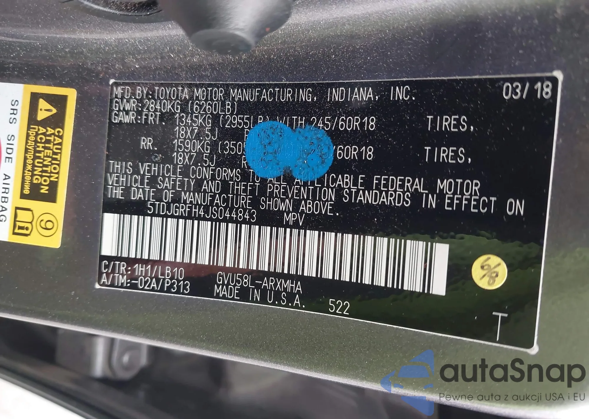 Toyota Highlander 2018 – Historia pojazdu (sprzedany na IAAI)