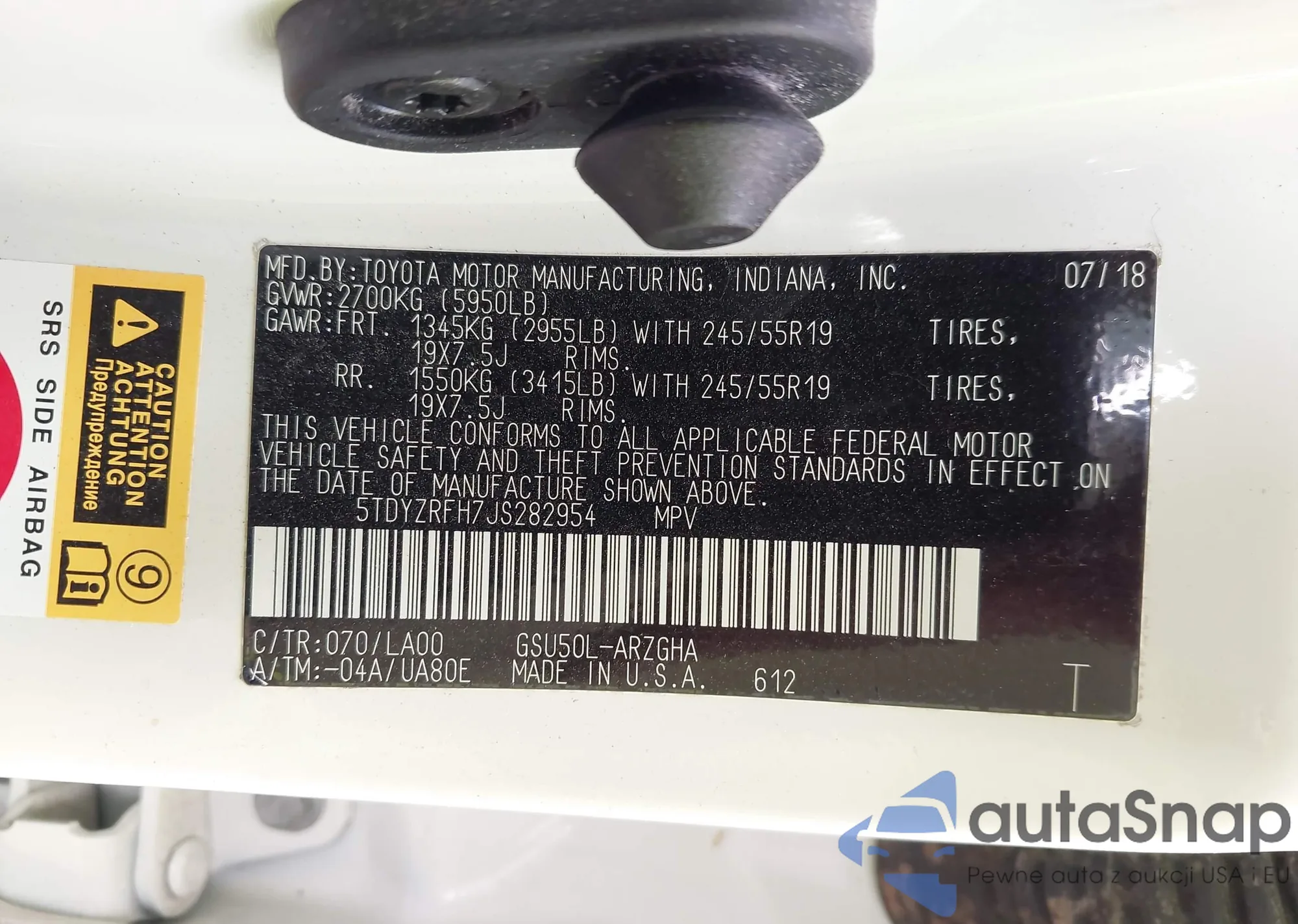 VIN: 5TDYZRFH7JS282954