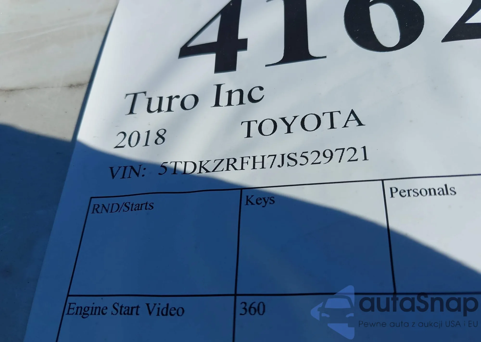 Samochód Toyota Highlander 2018 (VIN 5TDKZRFH7JS529721) sprzedaje go niezweryfikowany sprzedawca. Zalecamy raport Carfax i potwierdzenie możliwości rejestracji pojazdu przed zakupem.