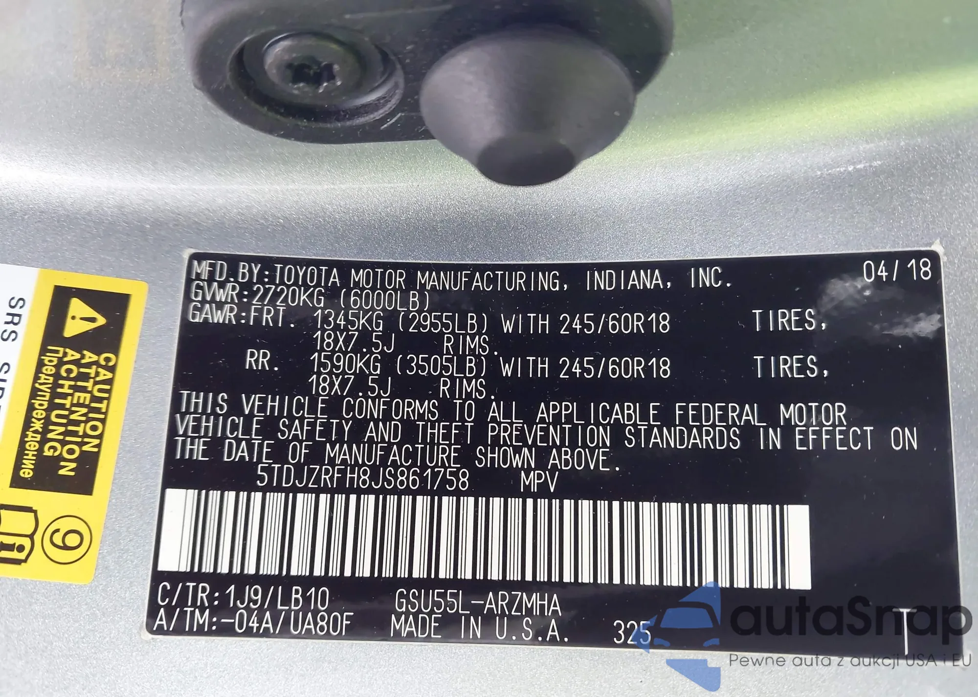 Samochód Toyota Highlander 2018 (VIN 5TDJZRFH8JS861758) nie był wcześniej licytowany. Dokumenty są czyste, przebieg odpowiada lub jest niższy niż średnia rynku. Sprzedaje go firma ubezpieczeniowa – polecamy zakup. Dostawa do portu zajmie ok. 6–8 tygodni.