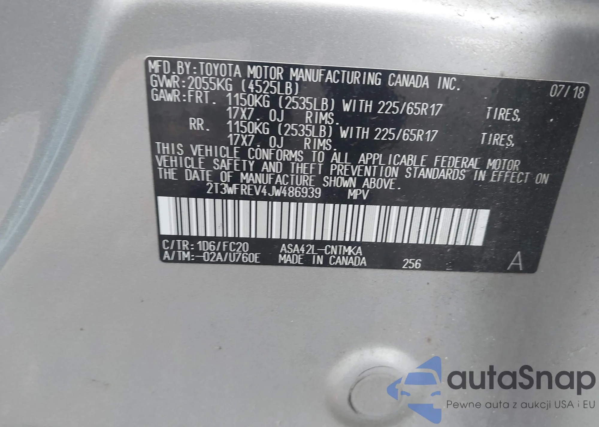 VIN: 2T3WFREV4JW486939