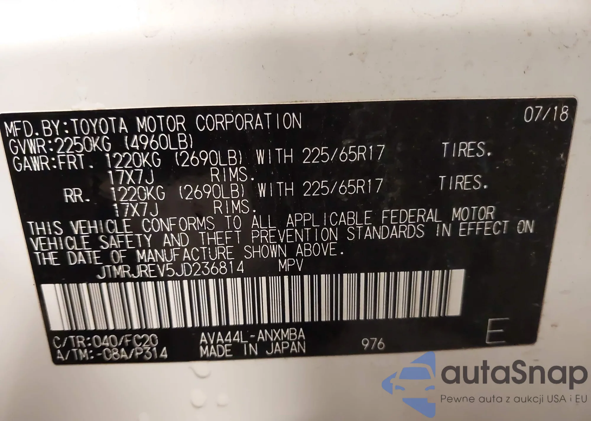 VIN: JTMRJREV5JD236814