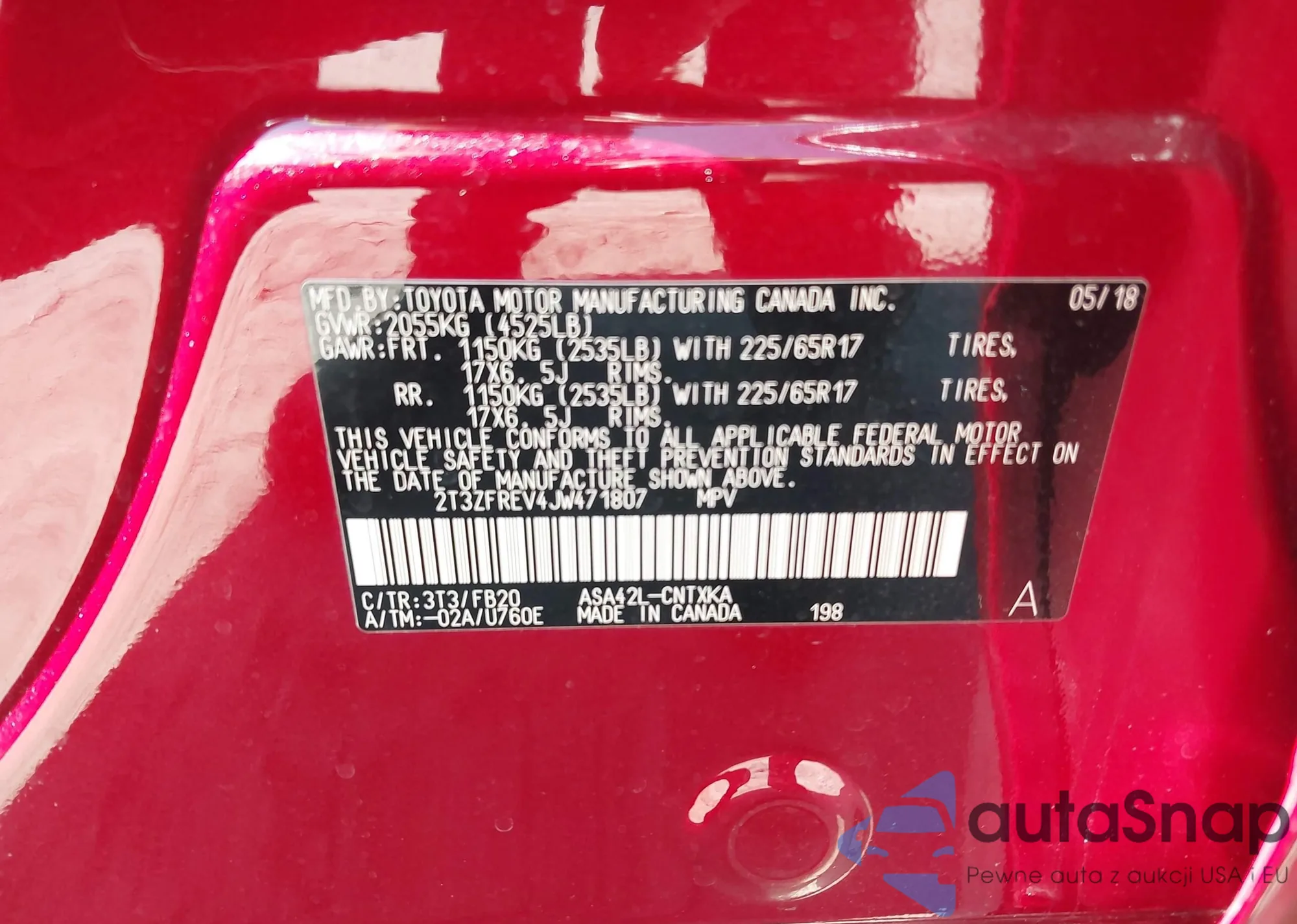 VIN: 2T3ZFREV4JW471807