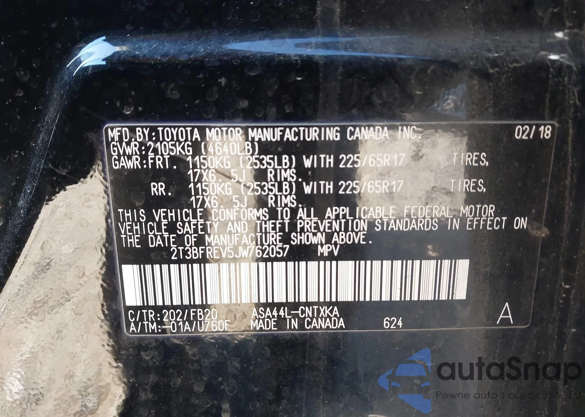 VIN: 2T3BFREV5JW762057