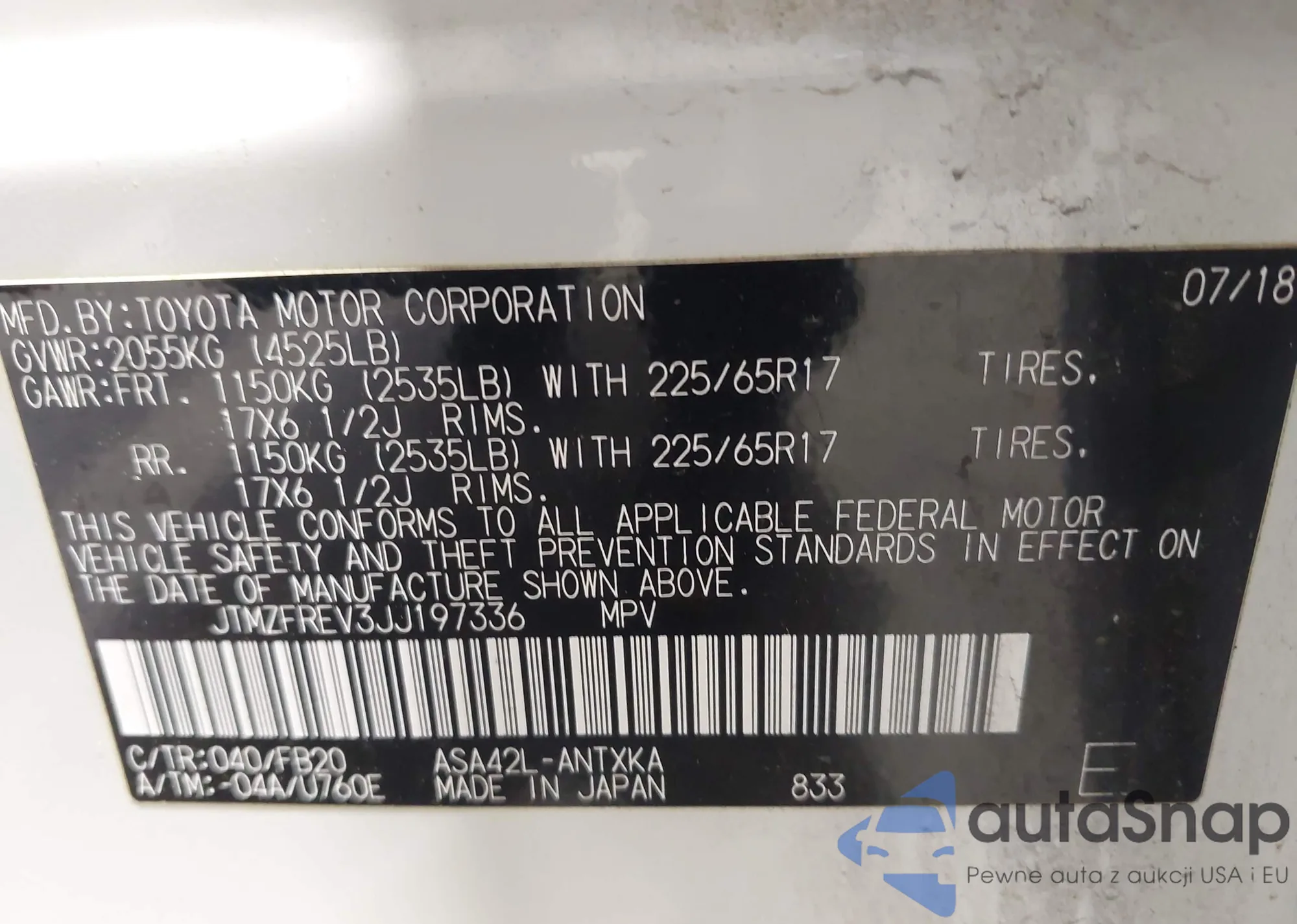 VIN: JTMZFREV3JJ197336