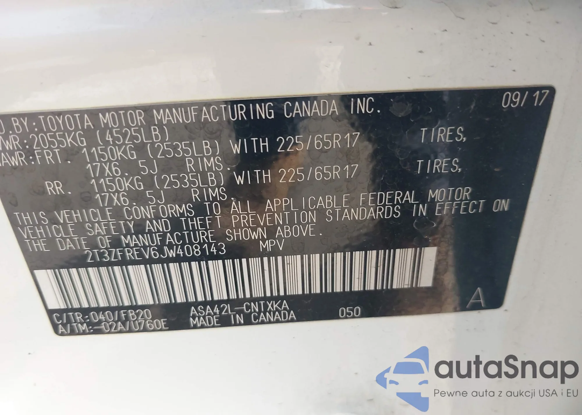 VIN: 2T3ZFREV6JW408143