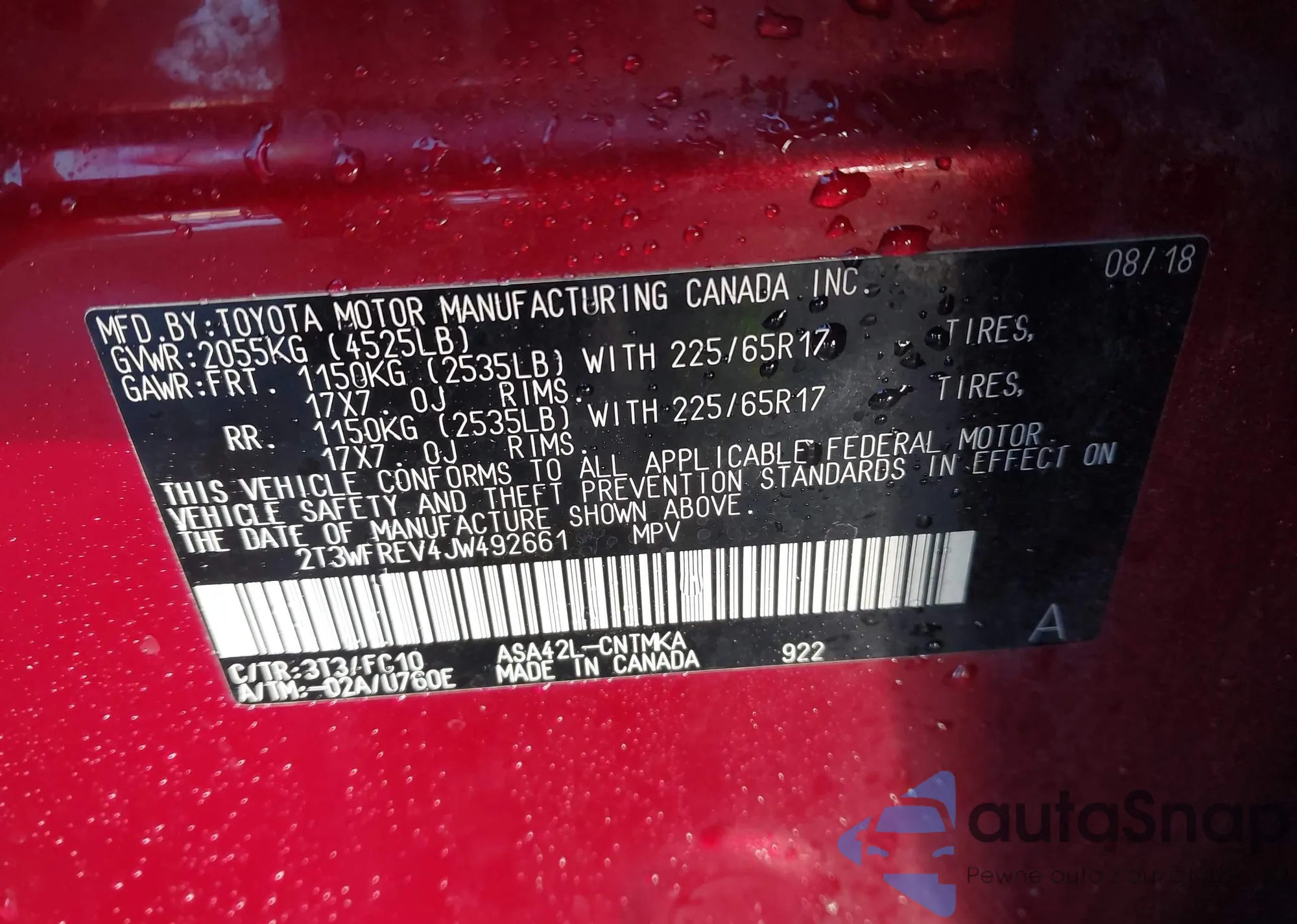 VIN: 2T3WFREV4JW492661