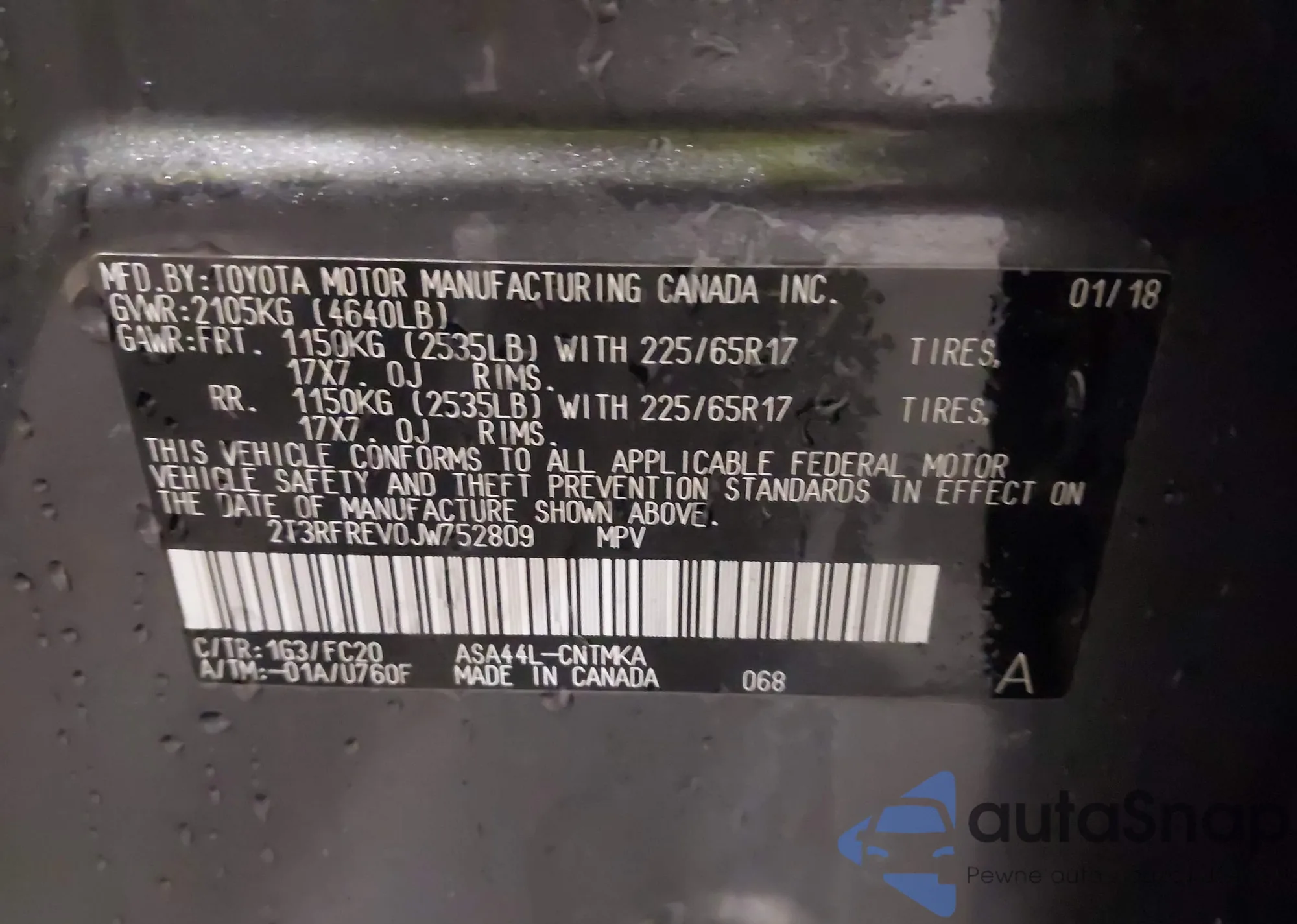 Samochód Toyota RAV 4 2018 (VIN 2T3RFREV0JW752809) nie był wcześniej licytowany. Dokumenty są czyste, przebieg odpowiada lub jest niższy niż średnia rynku. Sprzedaje go firma ubezpieczeniowa – polecamy zakup. Dostawa do portu zajmie ok. 6–8 tygodni.