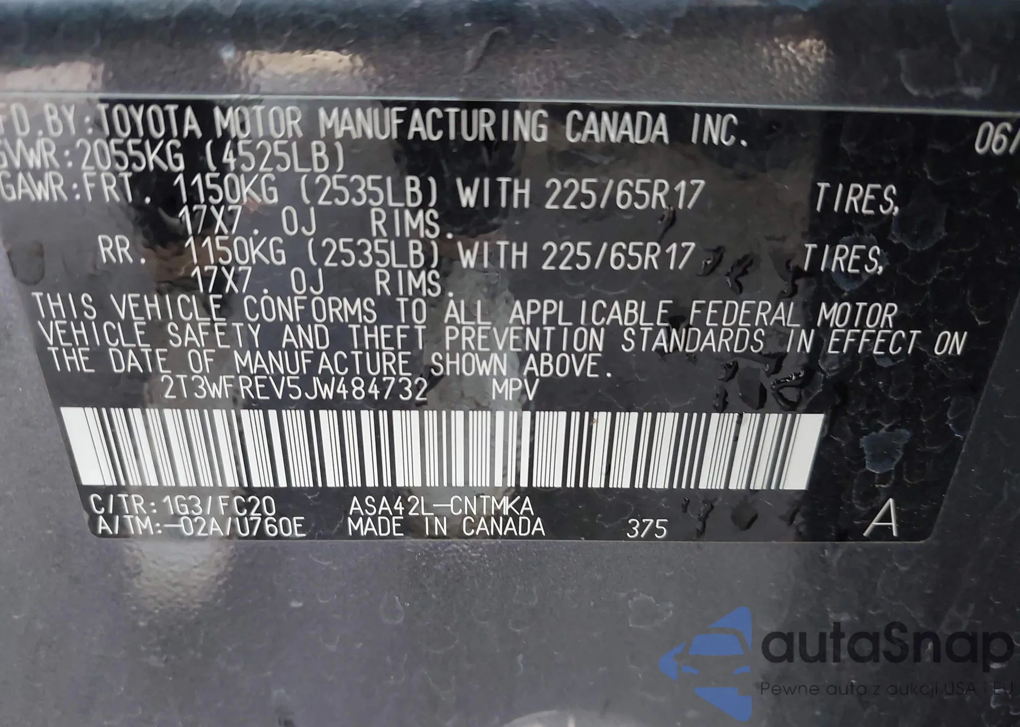 VIN: 2T3WFREV5JW484732