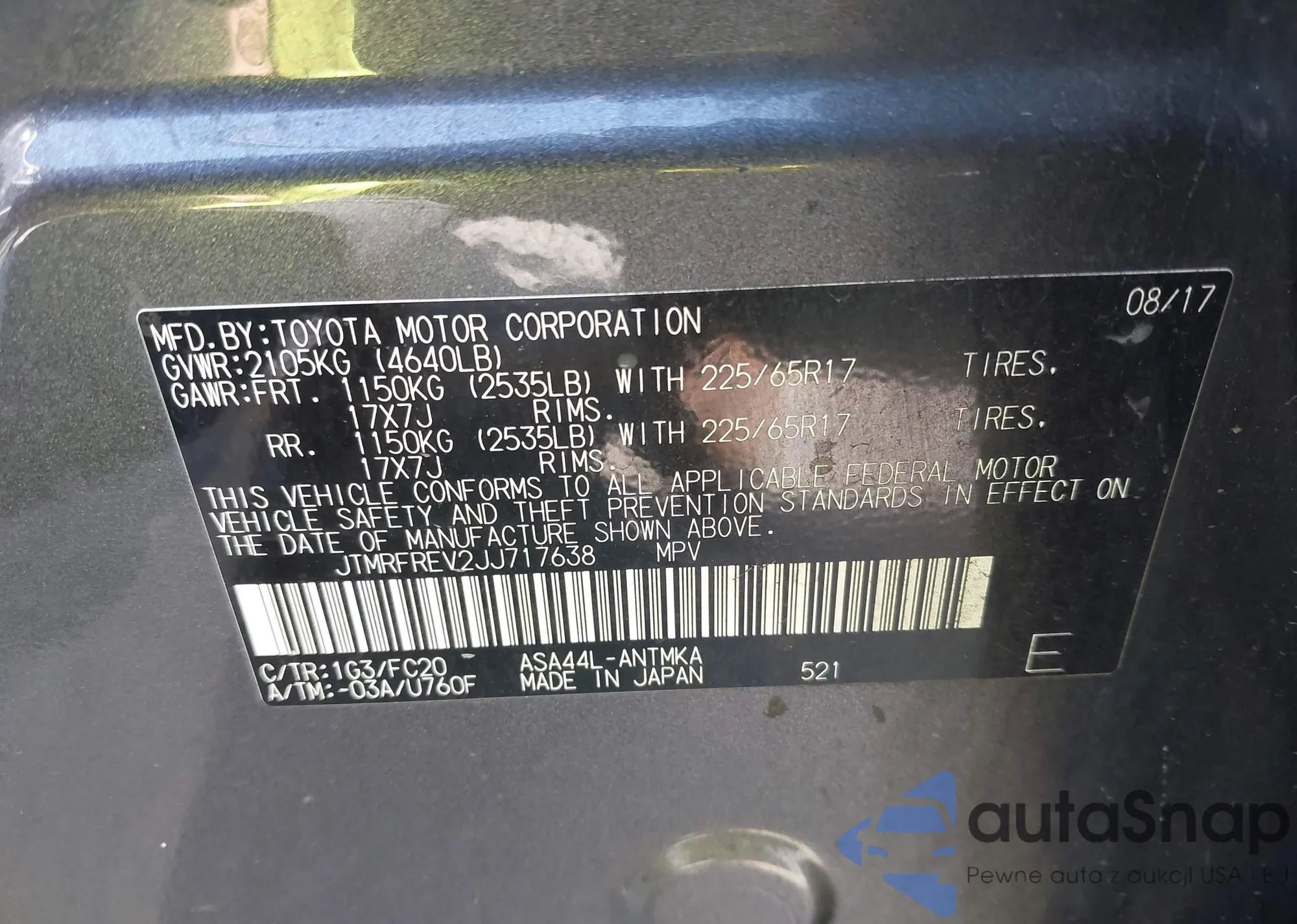 VIN: JTMRFREV2JJ717638