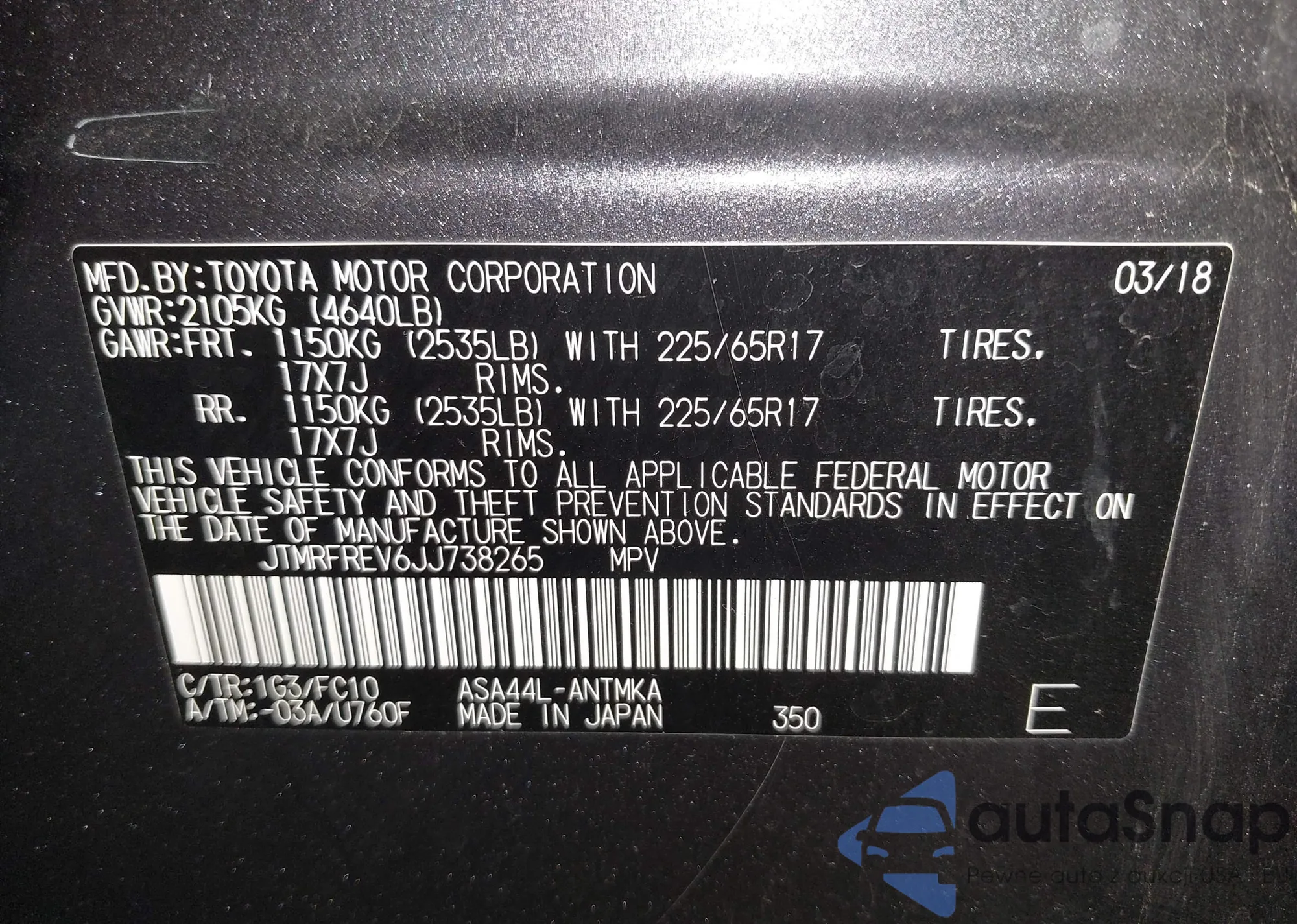 VIN: JTMRFREV6JJ738265