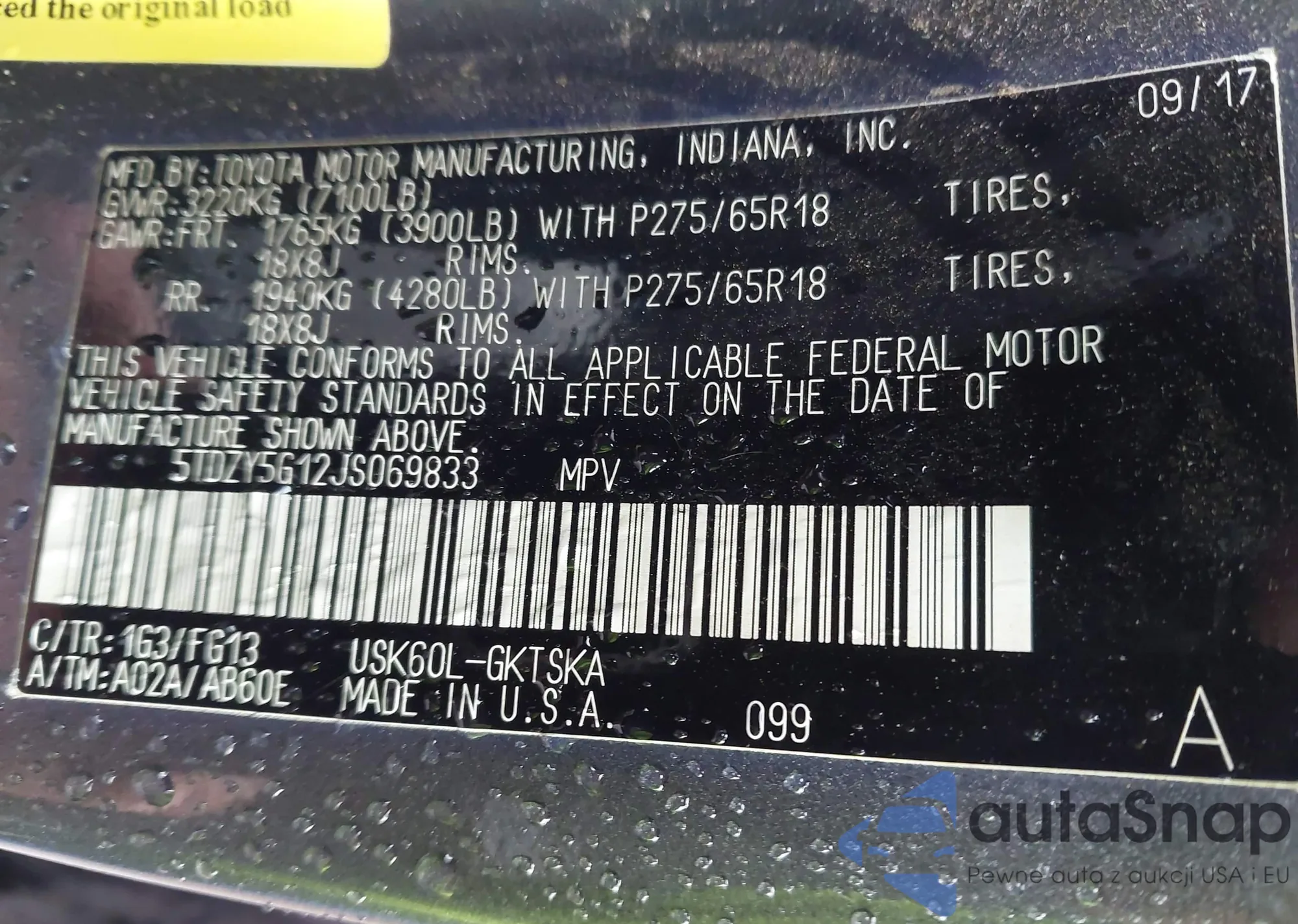 VIN: 5TDZY5G12JS069833