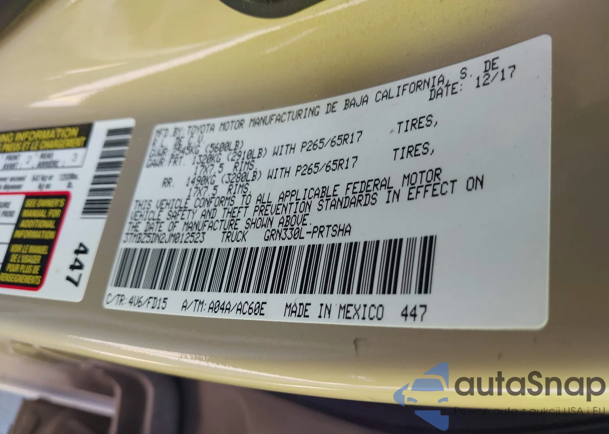 Toyota Tacoma 2018 – Historia pojazdu (sprzedany na IAAI)