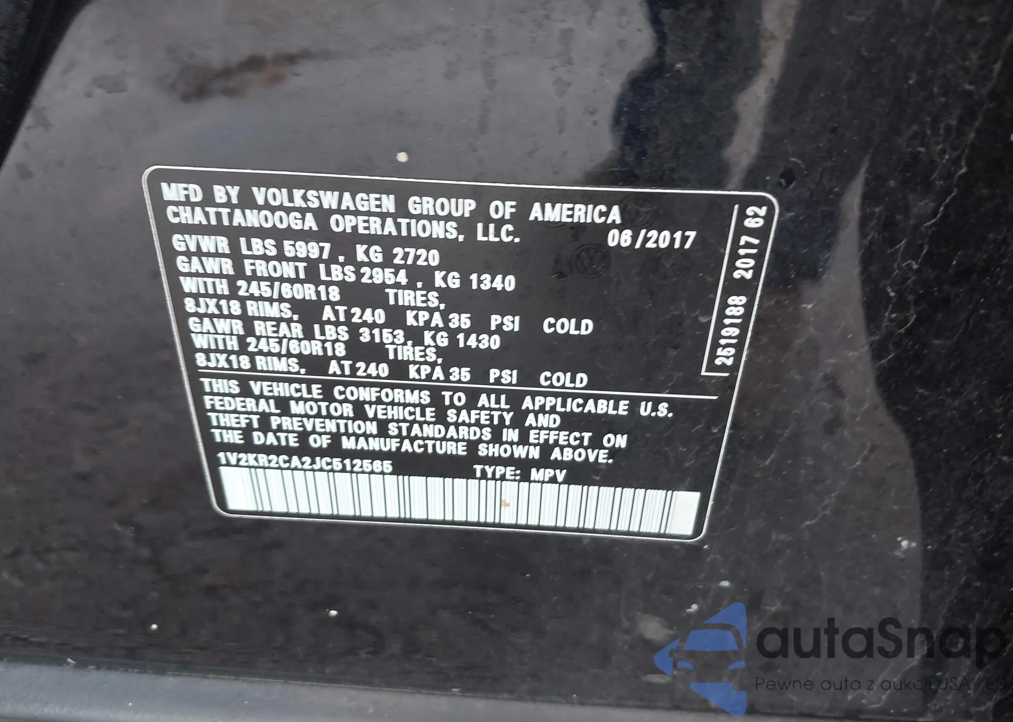 Samochód Volkswagen Atlas 2018 (VIN 1V2KR2CA2JC512565) nie był wcześniej licytowany. Dokumenty są czyste, przebieg odpowiada lub jest niższy niż średnia rynku. Sprzedaje go firma ubezpieczeniowa – polecamy zakup. Dostawa do portu zajmie ok. 6–8 tygodni.